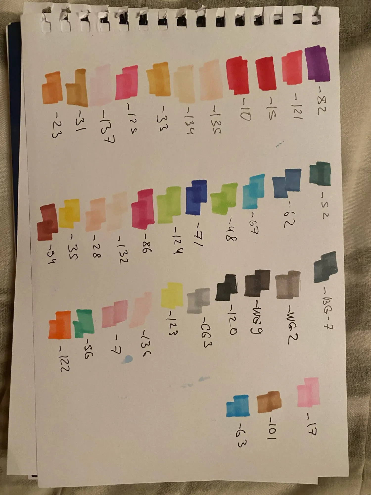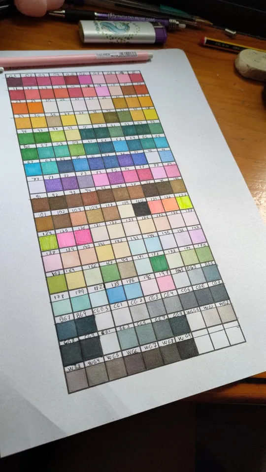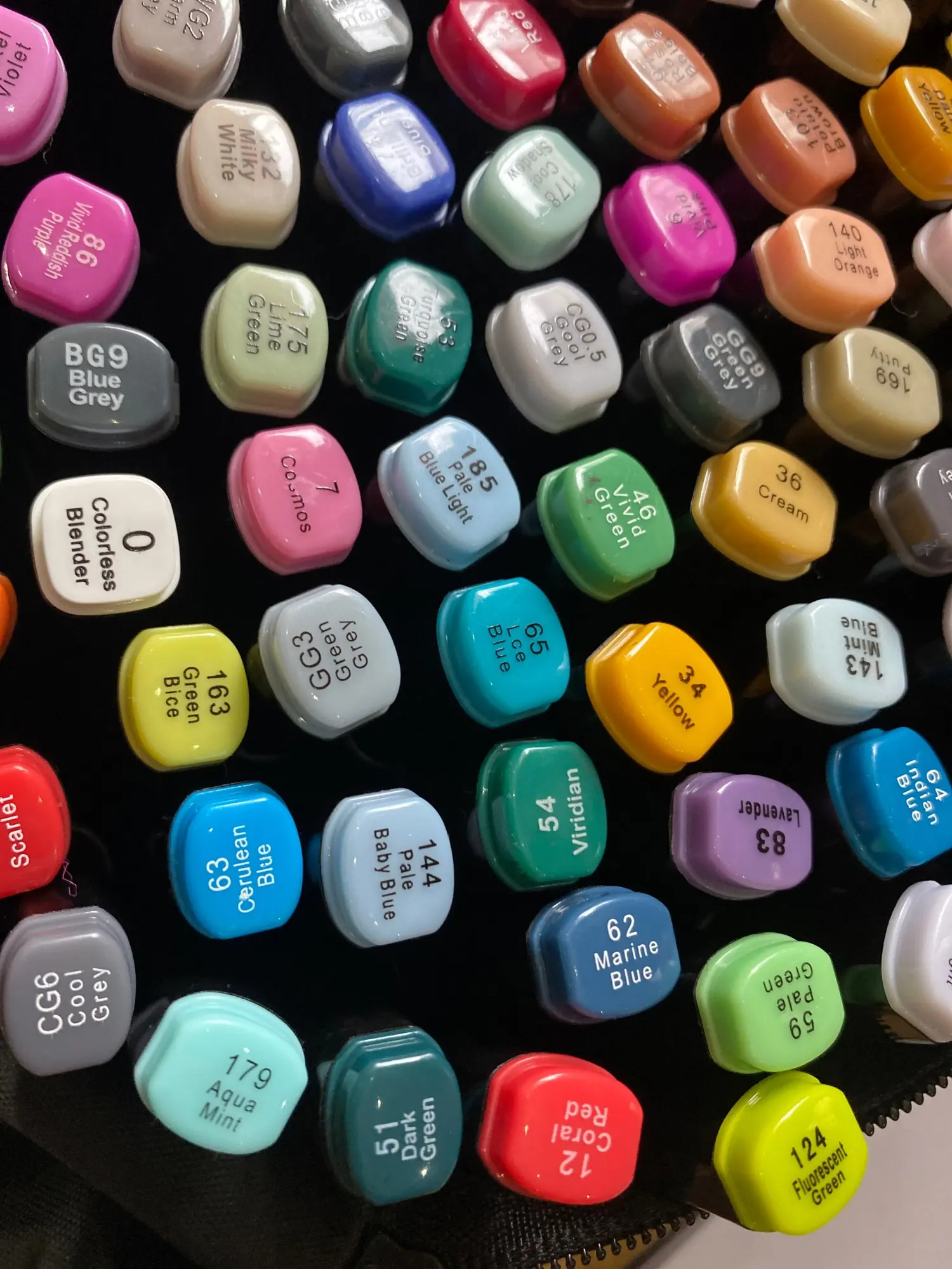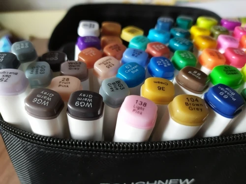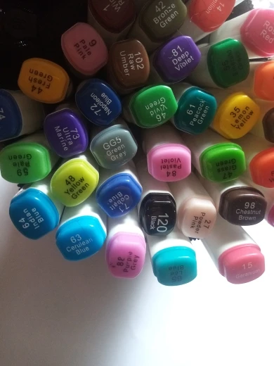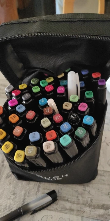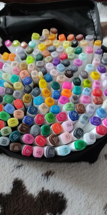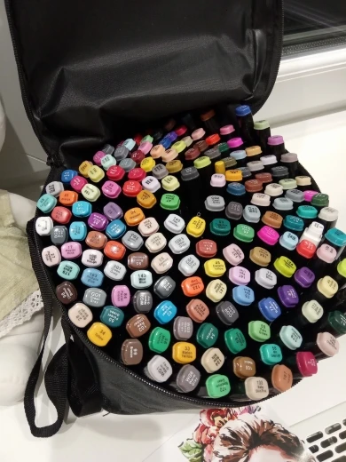 Прекрасные маркеры, которые имеют как преимущества, так и недостатки. Минусы: - как только начала рисовать, мне понадобился обычный желтый, а в наборе я нашла только номер 35 Lemon Yellow, который на бумаге выглядел больше как горчичный - слишком темный для единственного желтого в наборе. - немного странный набор оттенков. как и с жёлтым, я столкнулась с проблемой, начав рисовать в фиолетовых тонах. оказалось, что в наборе только один фиолетовый (73 Ultra Marine), даже каких-то близких производных этого цвета нет, только более розовый сиреневый (85 Vivid Purple) - часто, когда рисуешь, незасохший чирк маркером имеет один цвет, а после высыхания тускнеет и меняет тон, что может ввести в заблуждение Плюсы: - много зеленых, синих, серых и красных оттенков - не много, но достаточно пастельных, телесных оттенков. - есть прозрачный блендер - в подарок шла перчатка, черная, золотая, серебряная ручки и тонкий маркер - доставка: пришли за 5 дней (!)