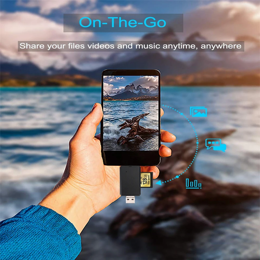 【Прочитайте большинство карт памяти со вспышкой 】: USB2.0 SD/micro SD/card reader для передачи данных, передачи файлов, фотографий, видео с SD/Micro SD карты на ваш компьютер (ПК или MacBook) , android смартфон и планшеты (с функцией OTG).