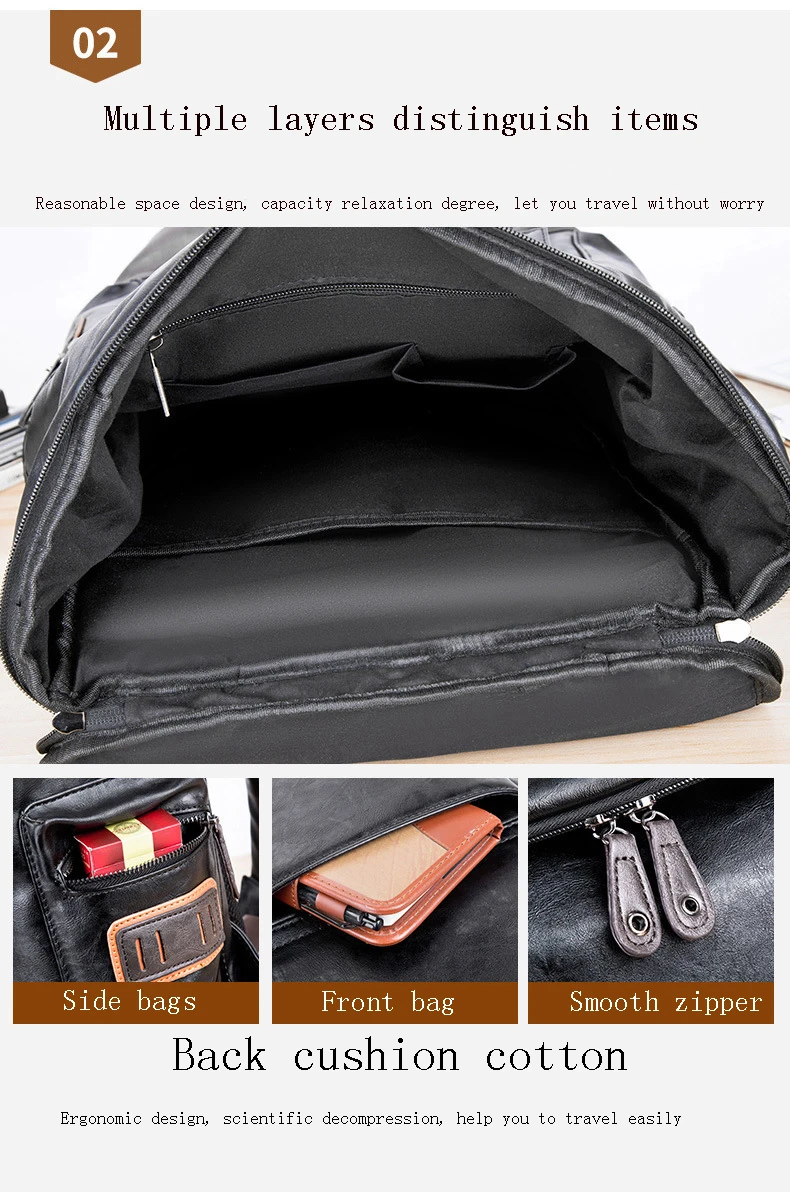 【Продукт】Мужской Дорожный рюкзак для ноутбука 15 дюймов из высококачественной кожи большой емкости