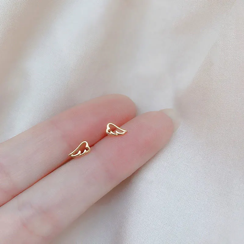 Ливи Новые Модные полые крылья ангела маленькие серьги-гвоздики для женщин Золотой Цвет простая женская изящная обувь на плоской подошве ручной работы; Вечерние подарок