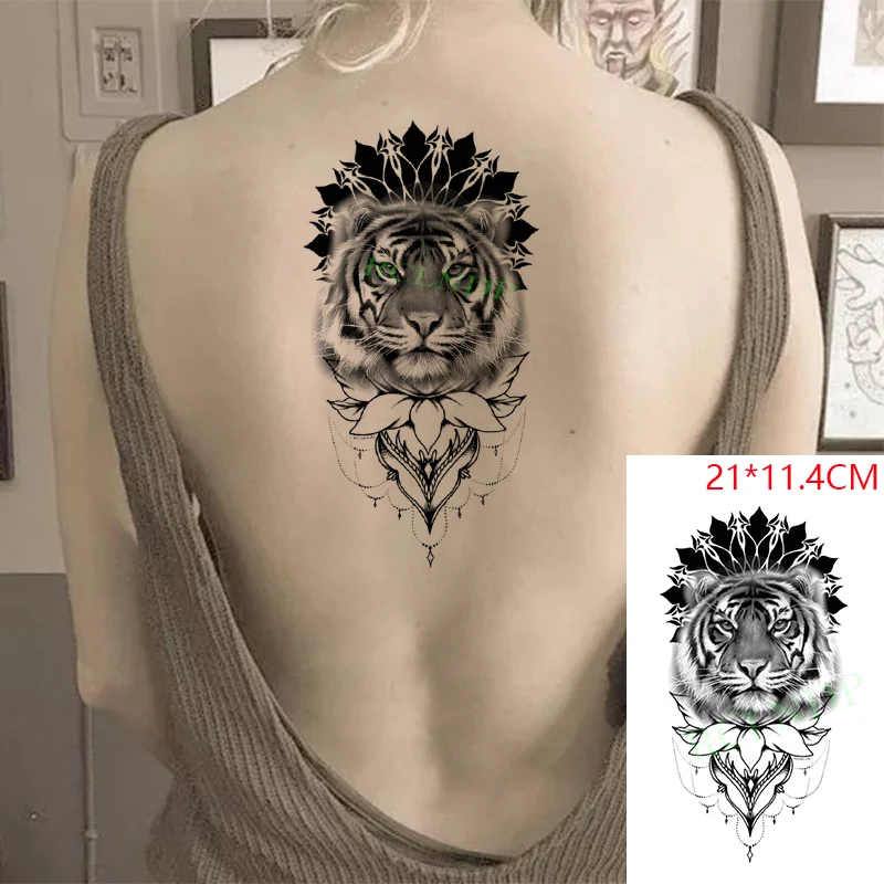 Водонепроницаемый Временная тату-наклейка для рев шапочка "Тигр" без глаз длинную бороду крутая Мужская поддельные татуировки золотого и серебряного флэш-тату боди-арт для Для женщин Мужчины