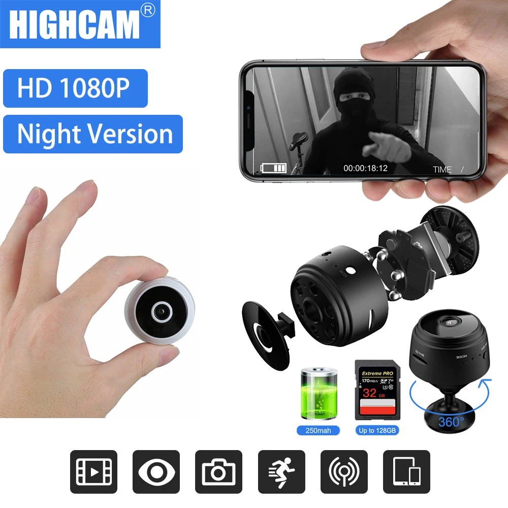 Мини-камера 1080P Беспроводная с поддержкой Wi-Fi и ночного видения