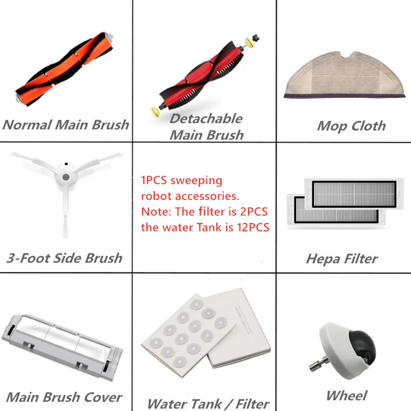 1. Полные аксессуары и сильная селективность2. Фильтр: рекомендуется заменить его на 3-6 месяцев. Высокоэффективный HEPA фильтр для робота-пылесоса Xiaomi имеет уникальный дизайн, легко моется и прочный пылезащитный ящик.3. Боковая щетка: практичная боковая щетка, подходящая для роботов-пылесосов Xiaomi. Нейлоновая Щетка, уникальный дизайн не поцарапает пол и мебель, легко собирает волосы из АБС-пластика, прочный.4. Основная кисть: рекомендуется заменить ее на 6-12 месяцев. Практичная скользящая щетка, Плавающая структура пылесоса робота Xiaomi, обеспечивает глубокое очищение.5. Xiaomi 1-го поколения Общие аксессуары