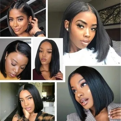 Парик короткий прямой черный из термостойкого волокна для чернокожих женщин