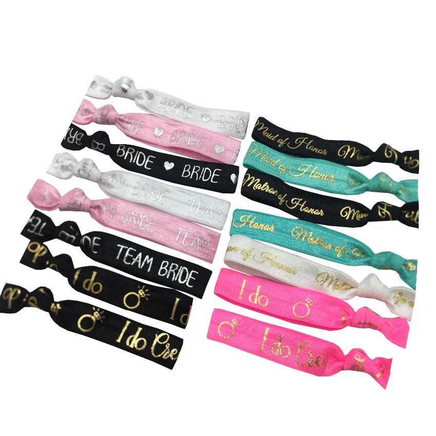 15 цветов, 150 шт., свадебные узелковые эластичные повязки для волос, TEAM BRIDE I DO CREW Maid Of Honor, держатель конского хвоста, вечерние браслеты на запястье