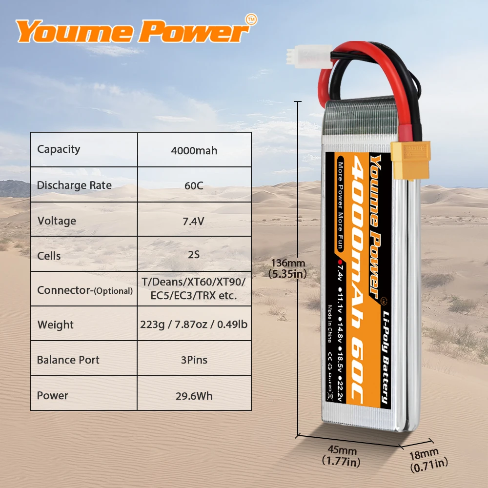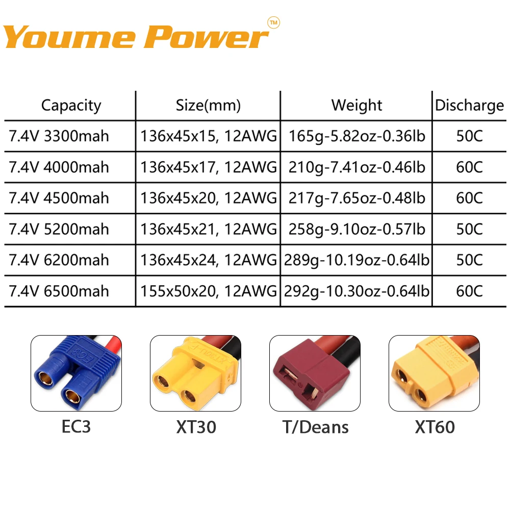 Литий-полимерный аккумулятор Youme 2S 7,4 В 3300 мАч 4000 мАч 4500 ...