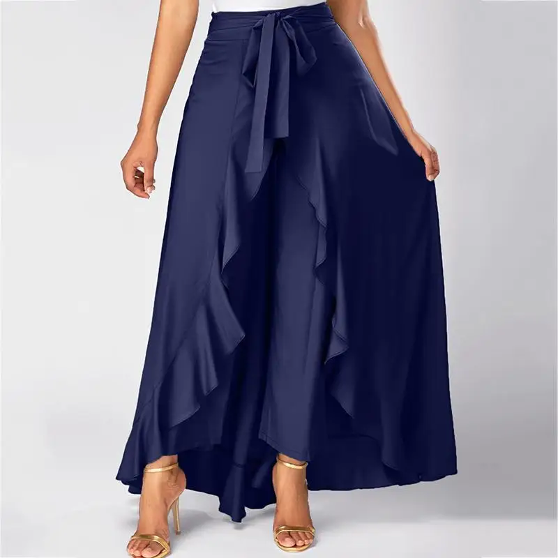 Женские брюки палаццо 2022 повседневные брюки с рюшами на шнуровке элегантные Асимметричные свободные однотонные осенние женские брючные юбки с высокой талией
