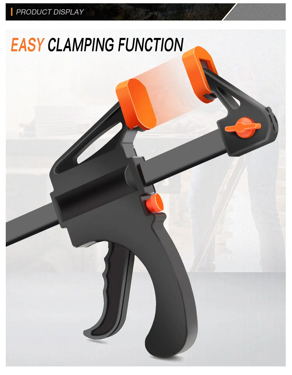 1. Продукт: F зажим для обработки дерева2. Материал: пластик3. Размер: 4 дюйма4. Цвет: черный, телесный