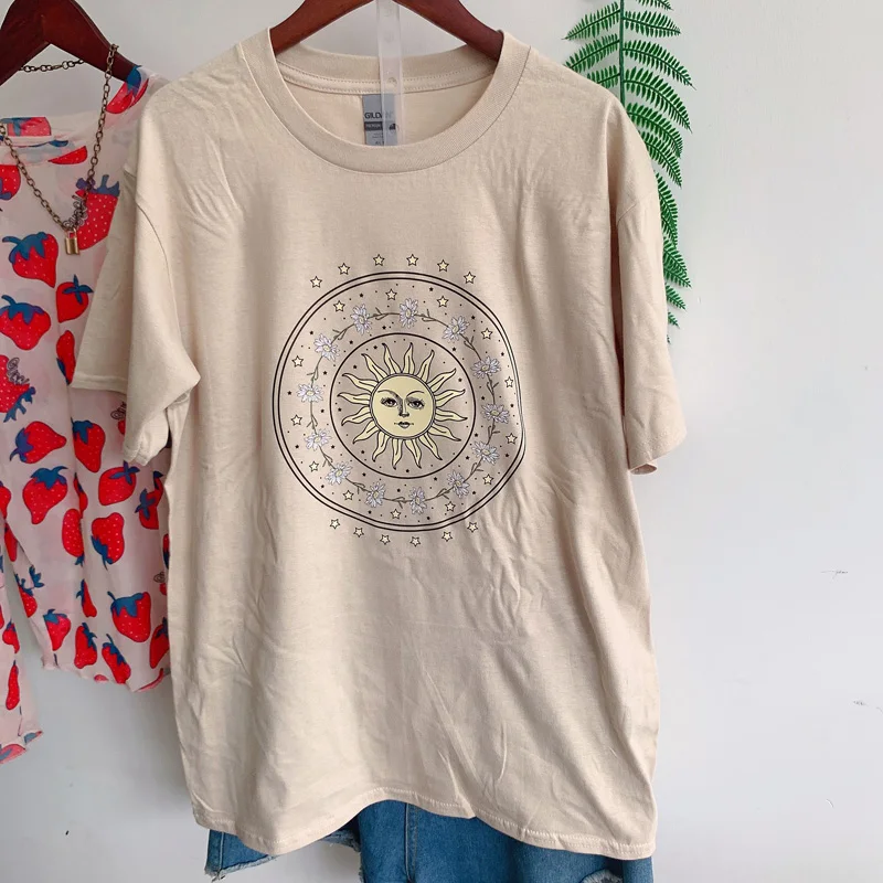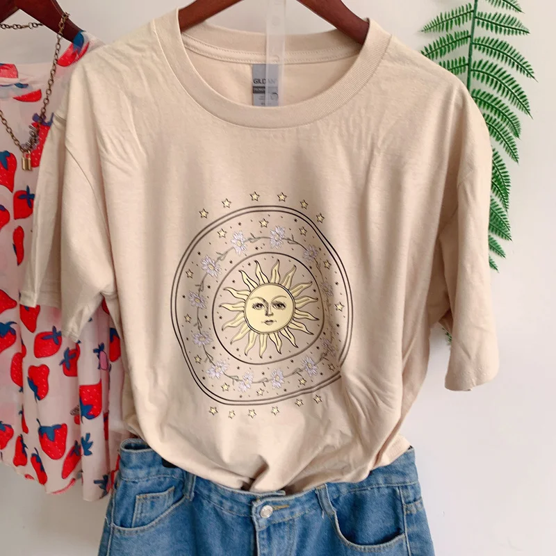 Женская Винтажная Футболка sunfiz YF, с принтом солнце и луна, Своб...