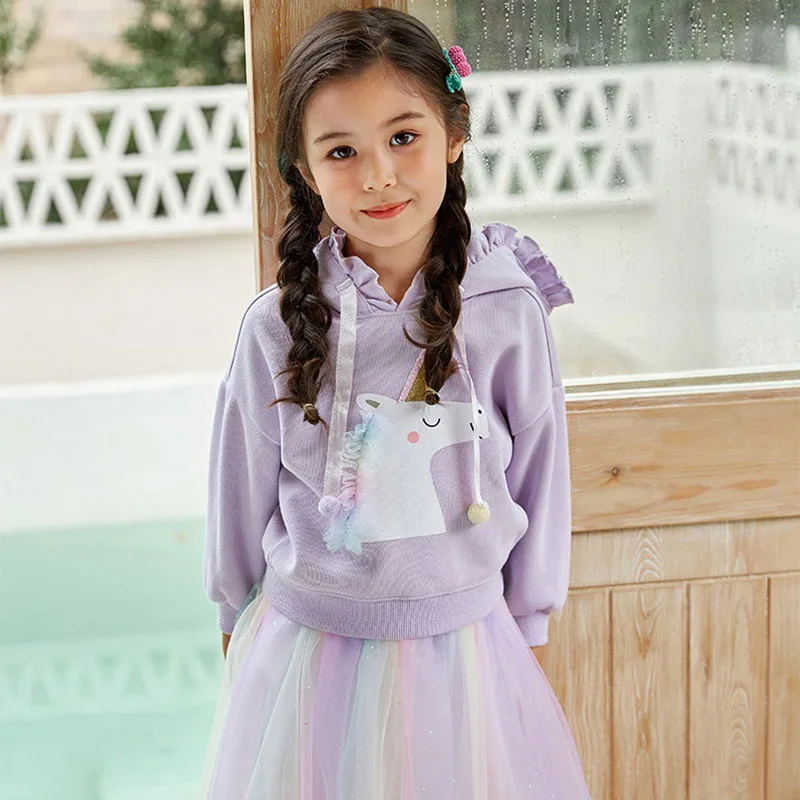 Обувь для девочек Единорог Комплекты одежды; Сезон весна-осень; Прелестная куртка с капюшоном и персонажем из мультфильма, свитер, сетчатая юбка радужного цвета, юбка 2 шт. От 3 до 7 лет, детская одежда