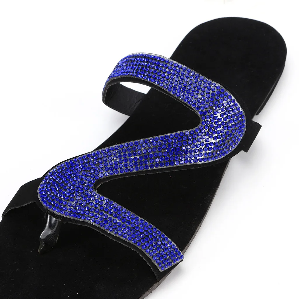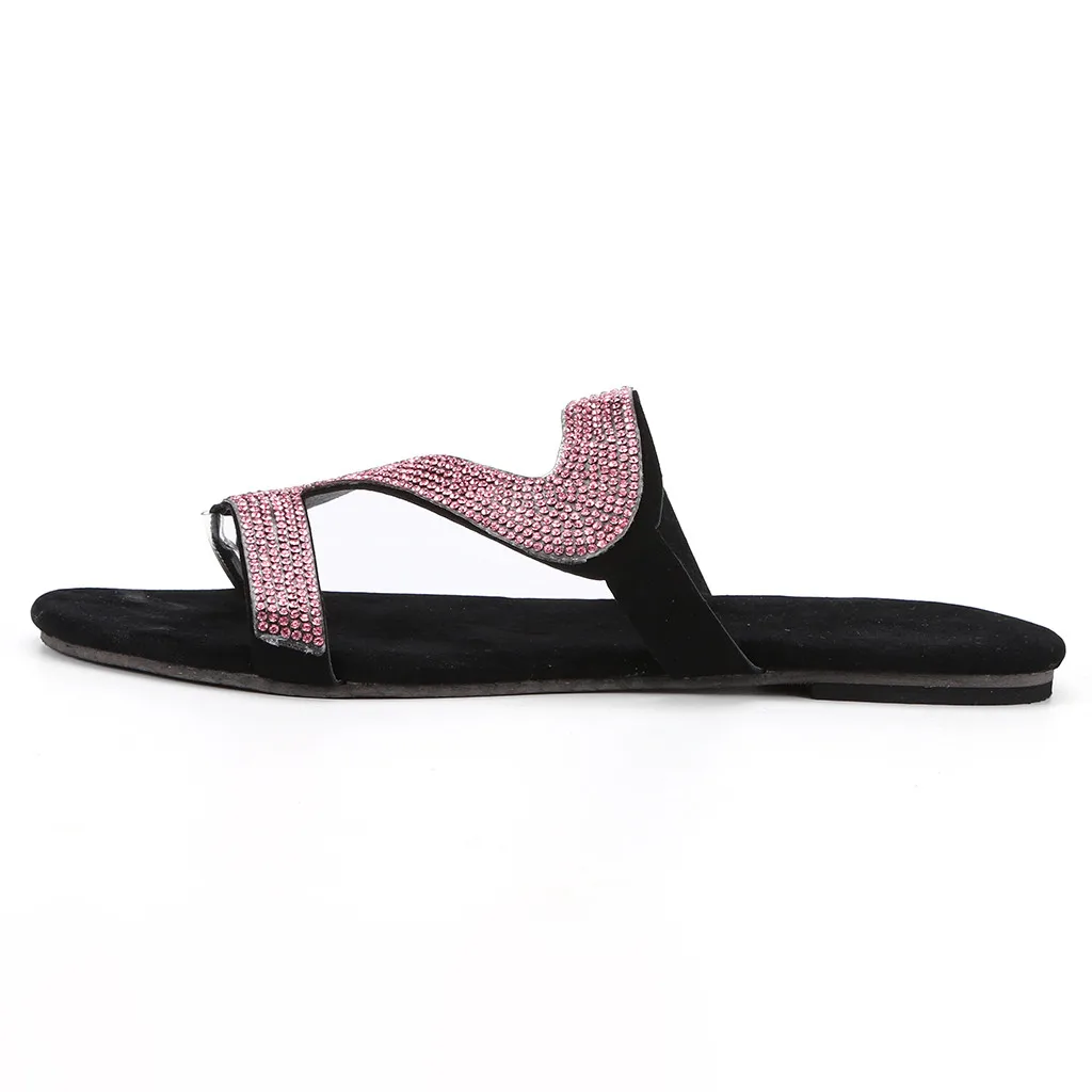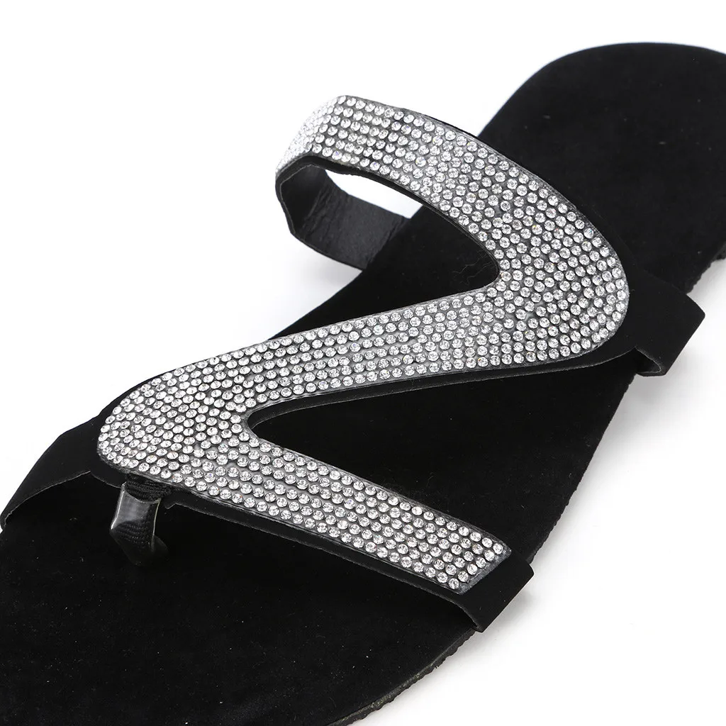 Шлепанцы женские в богемном стиле, повседневные сандалии на плоской подошве, однотонные туфли с кристаллами, римские тапочки, большие размеры, на лето