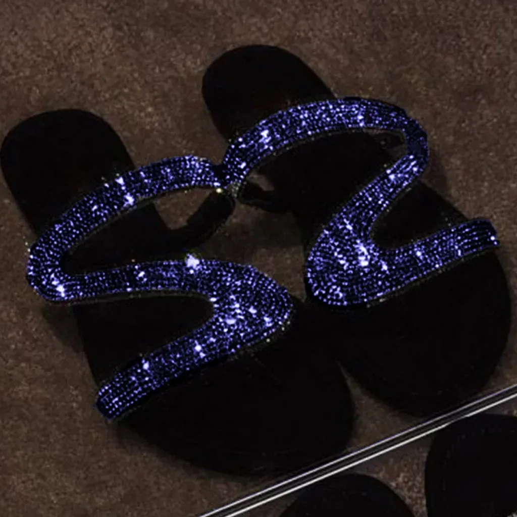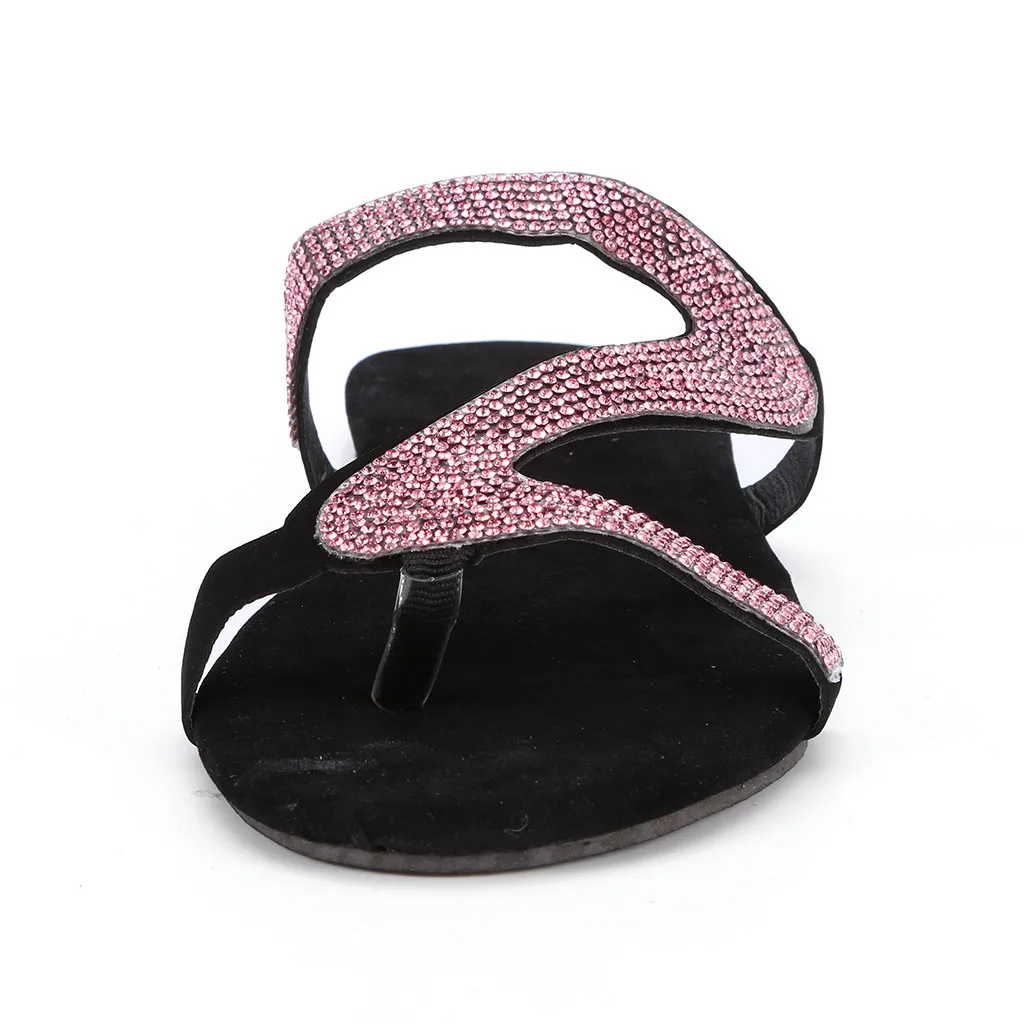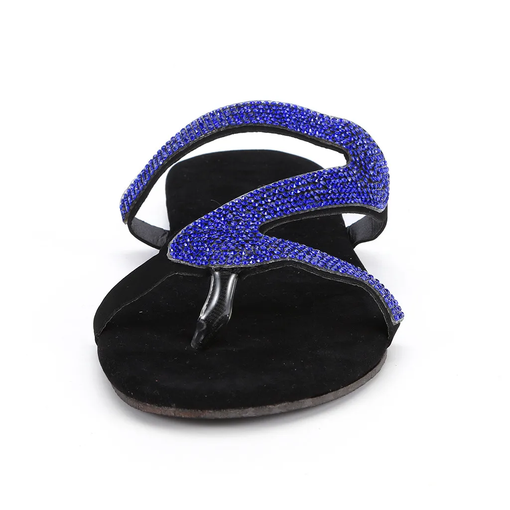 Шлепанцы женские в богемном стиле, повседневные сандалии на плоской подошве, однотонные туфли с кристаллами, римские тапочки, большие размеры, на лето