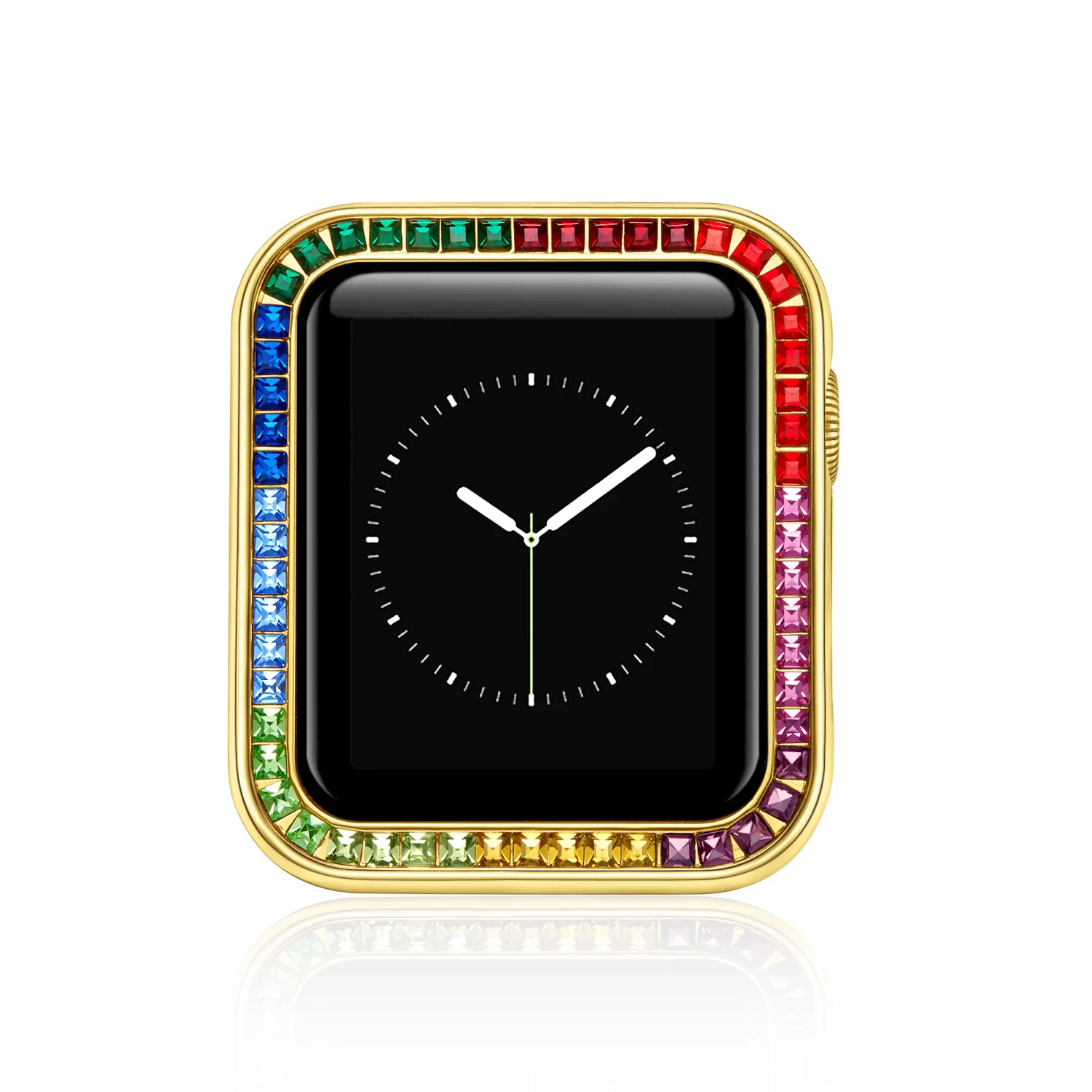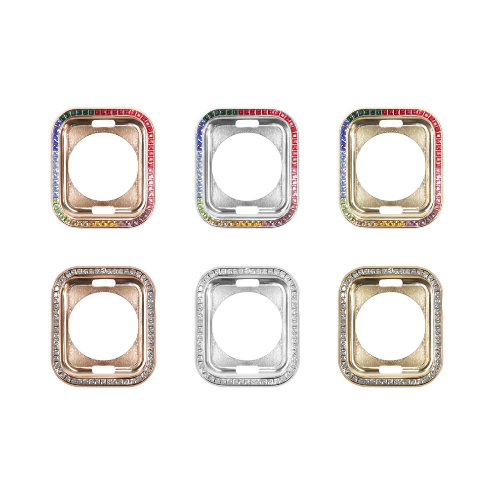 Чехол Алмазный для Apple Watch 44 мм 40 мм 38 мм 42 мм, цветной металлический бампер Стразы для IWatch Series 6 SE 5 4, прозрачный чехол