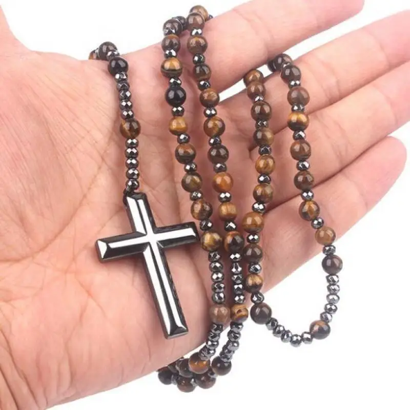 Натуральный камень католический четки оптом по низкой цене ожерелья для женщин и мужчин гематит крест кулон Религиозные ювелирные изделия