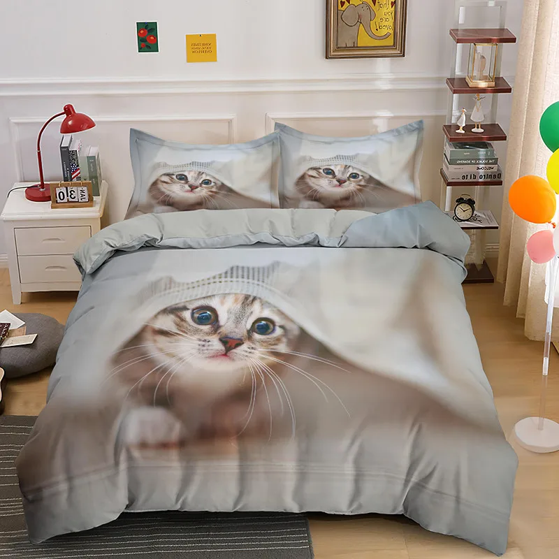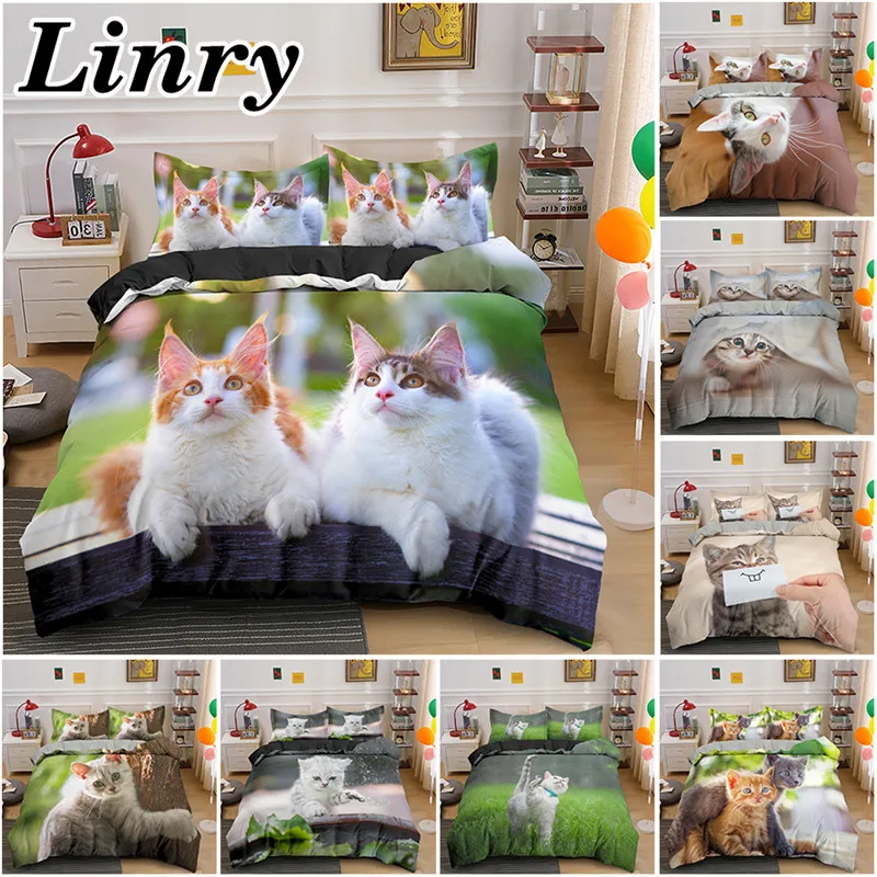 Одеяло с животными, пододеяльник, милый кот, Комплект постельного б...