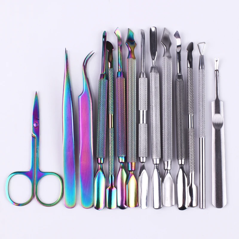 Нержавеющая сталь кутикулы толкатель двойной конец удаления омертвевшей кожи триммер педикюр Пинцет Ножницы палка Маникюр Аксессуары для ногтей