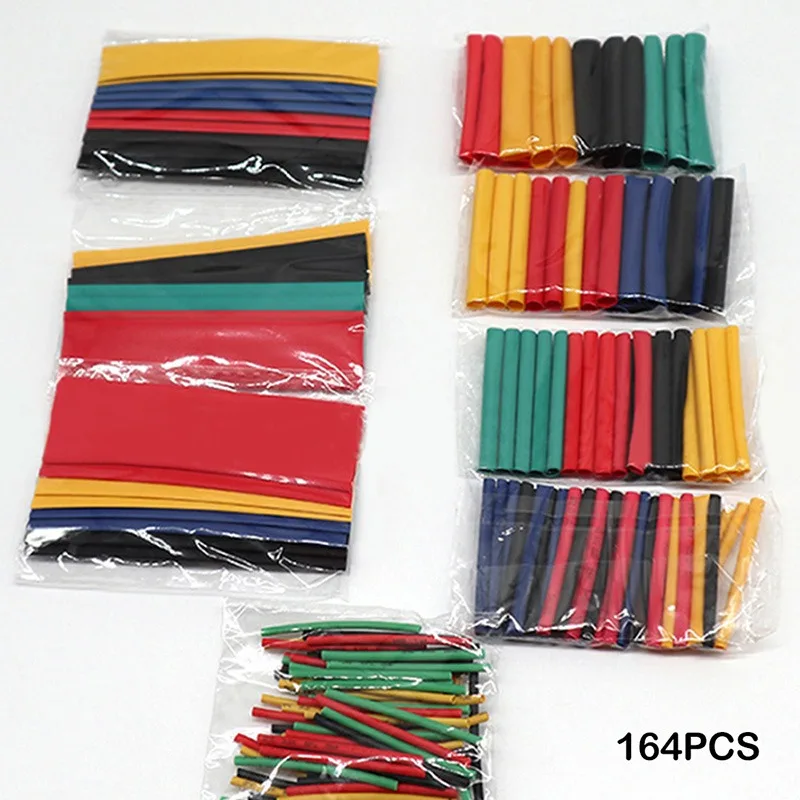 Набор термоусадочных трубок 164 шт., термоусадочные полиолефиновые изоляционные трубки в ассортименте, термоусадочные трубки для проводов и кабелей 8 размеров 2:1 s