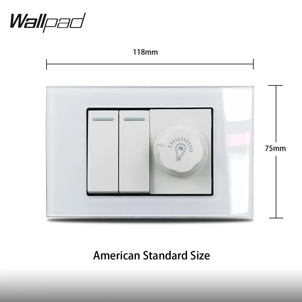 118*75 мм диммер и 2 кнопочный настенный выключатель Wallpad L3 белая стеклянная рамка 2 банда 1 2 позиционный переключатель с светильник с регулировкой яркости