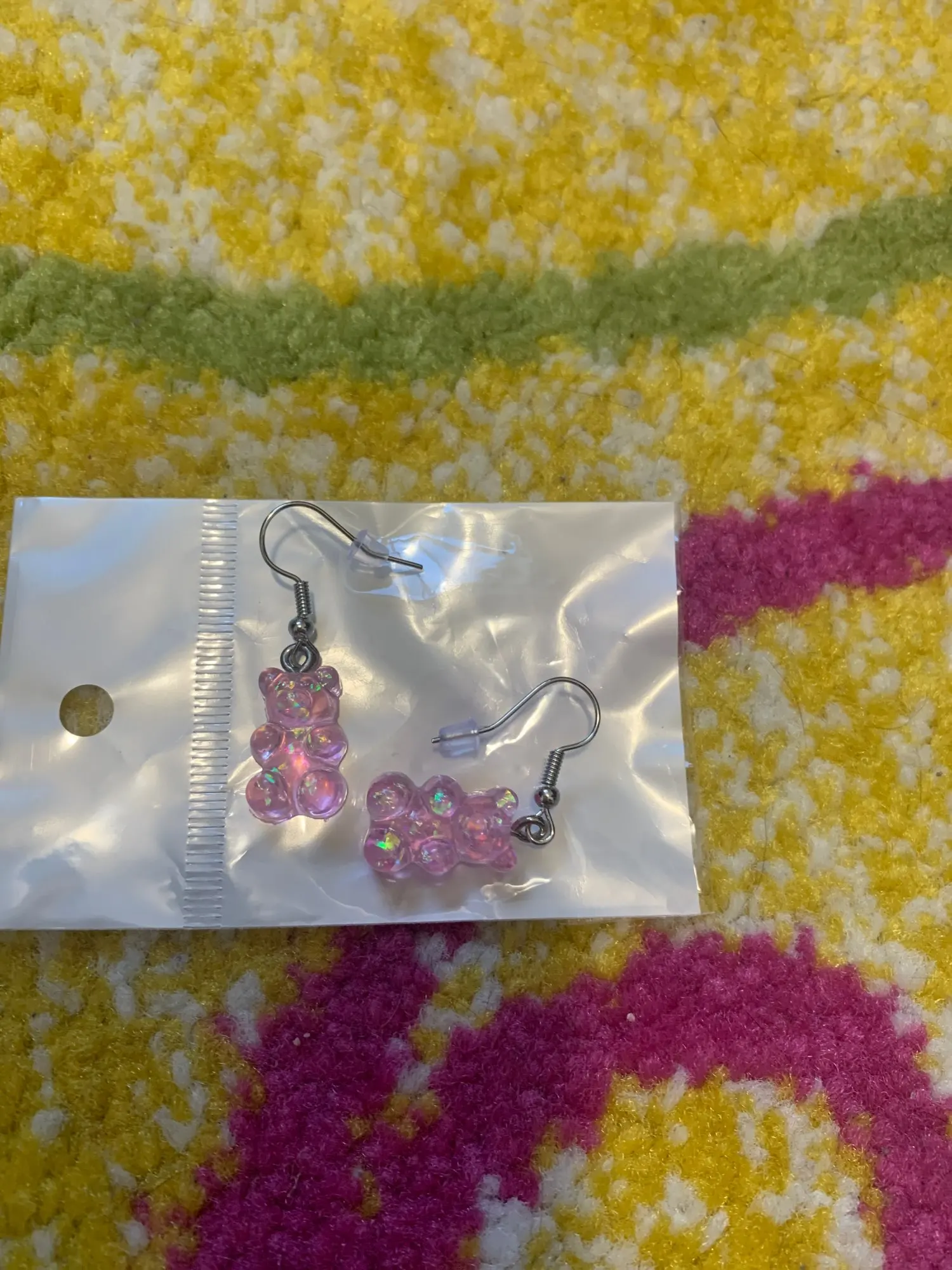 Милые серьги в виде жевательного фиолетового розового медведя, эффе...