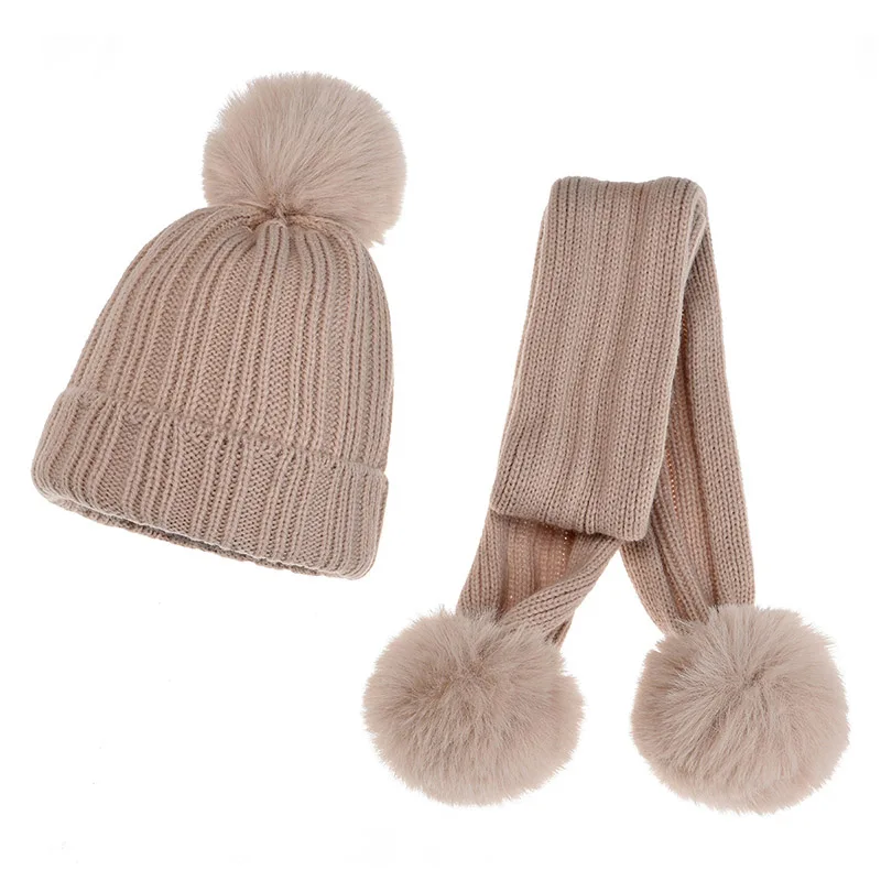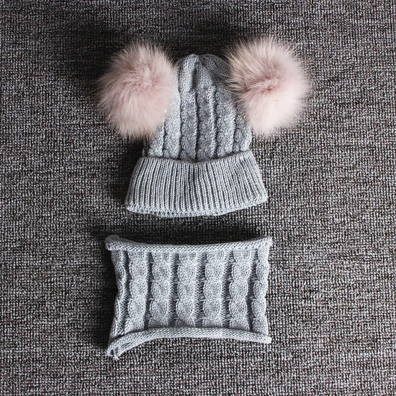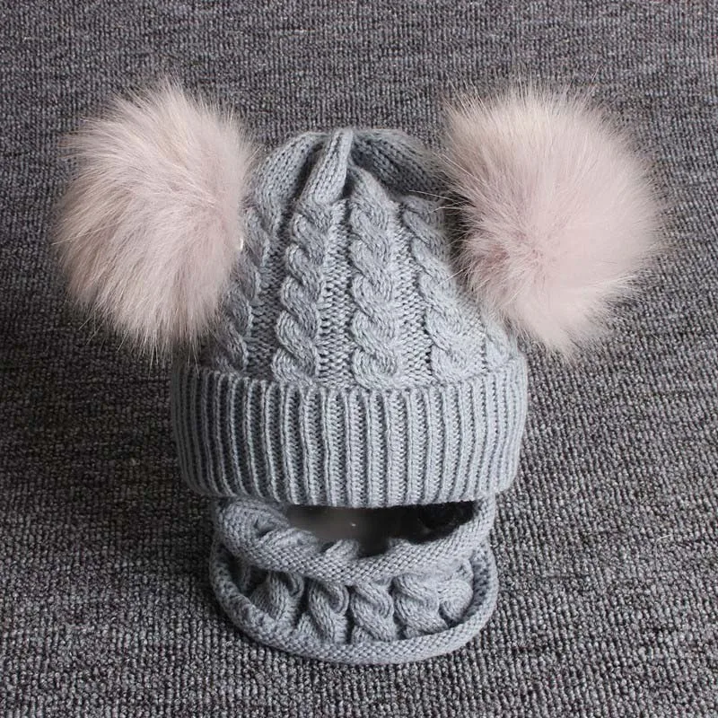 2 шт.компл., вязаная детская шапка, шарф с помпоном, милая шапка дл...
