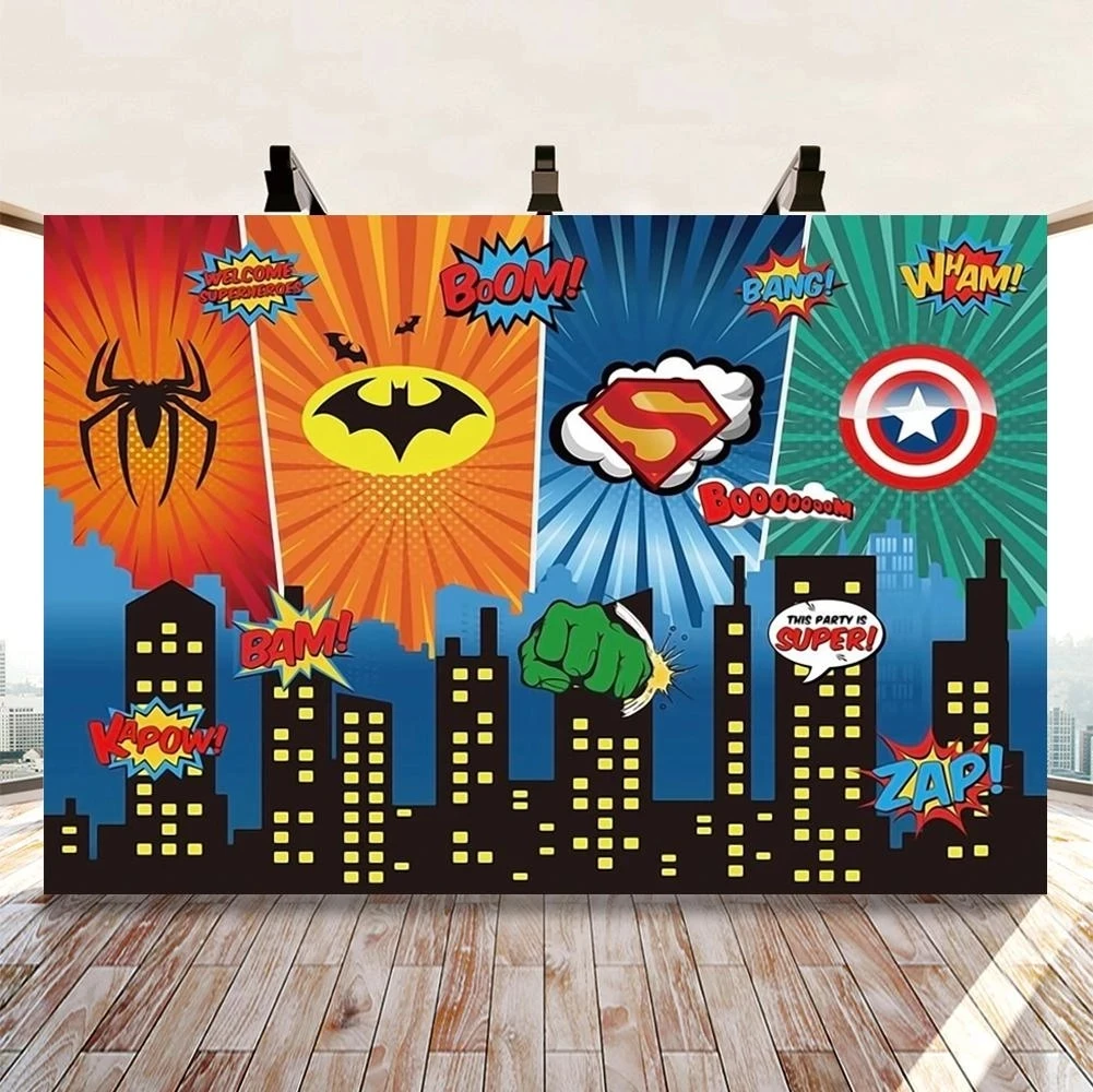Фотофон с супергероями комиксов и городскими фотографиями