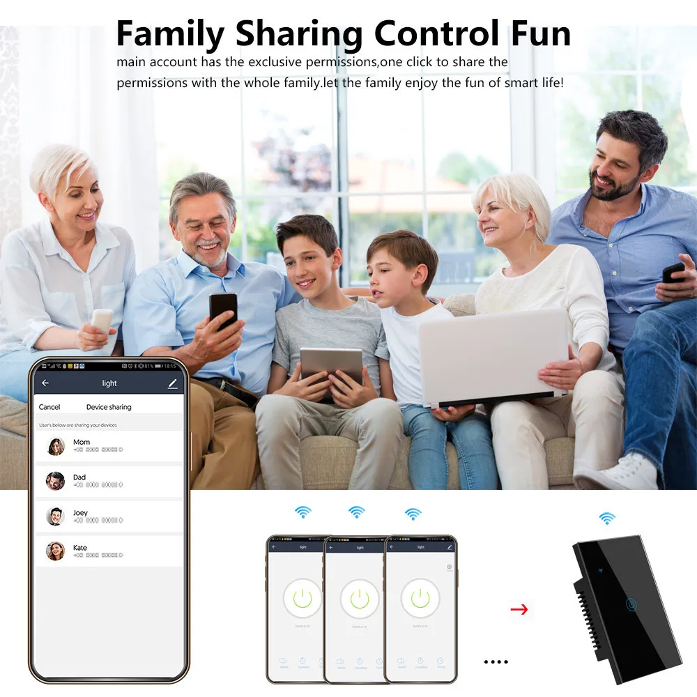ASEER Wifi настенный сенсорный выключатель с дистанционным управлением 1 банда стандарт США Bluetooth светильник переключатель AC100-240V,Tuya,Alexa,Google