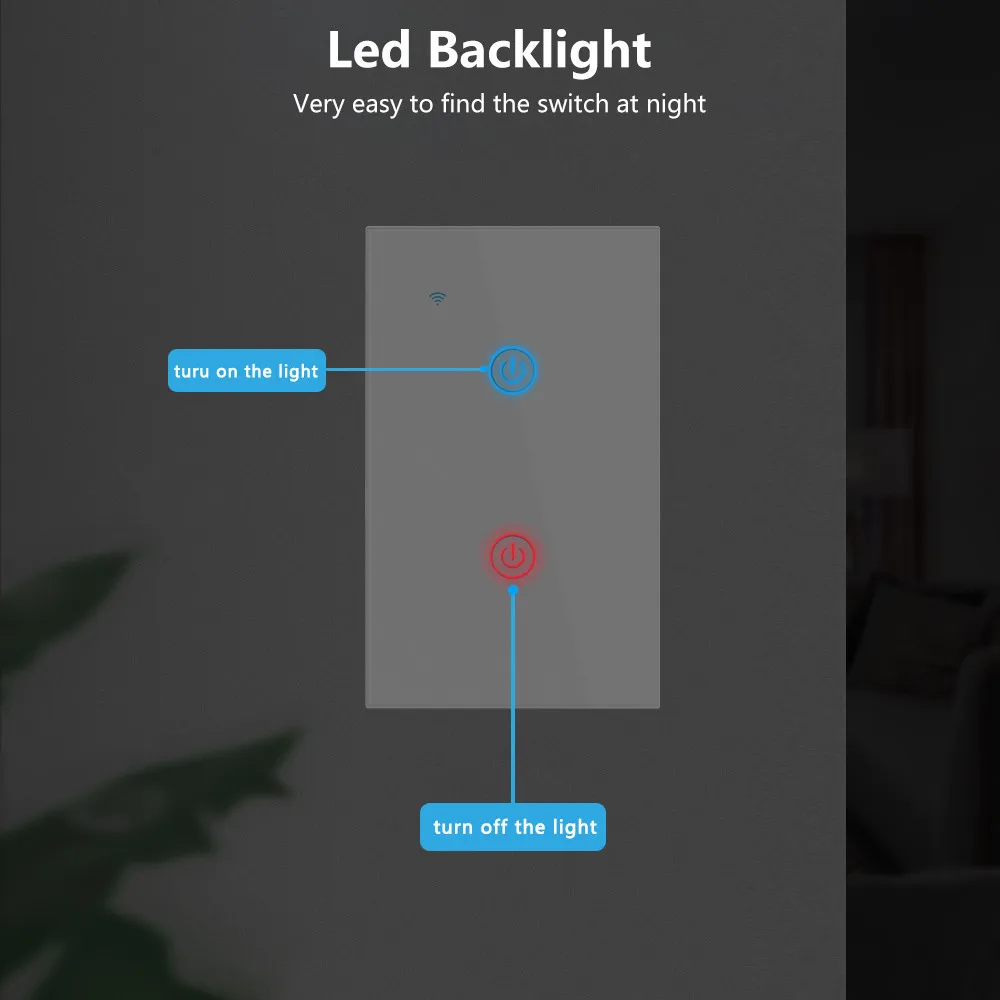 ХарактеристикиWifi Wall Touch Sensitive Switch Remote Control 1 Gang US Standard