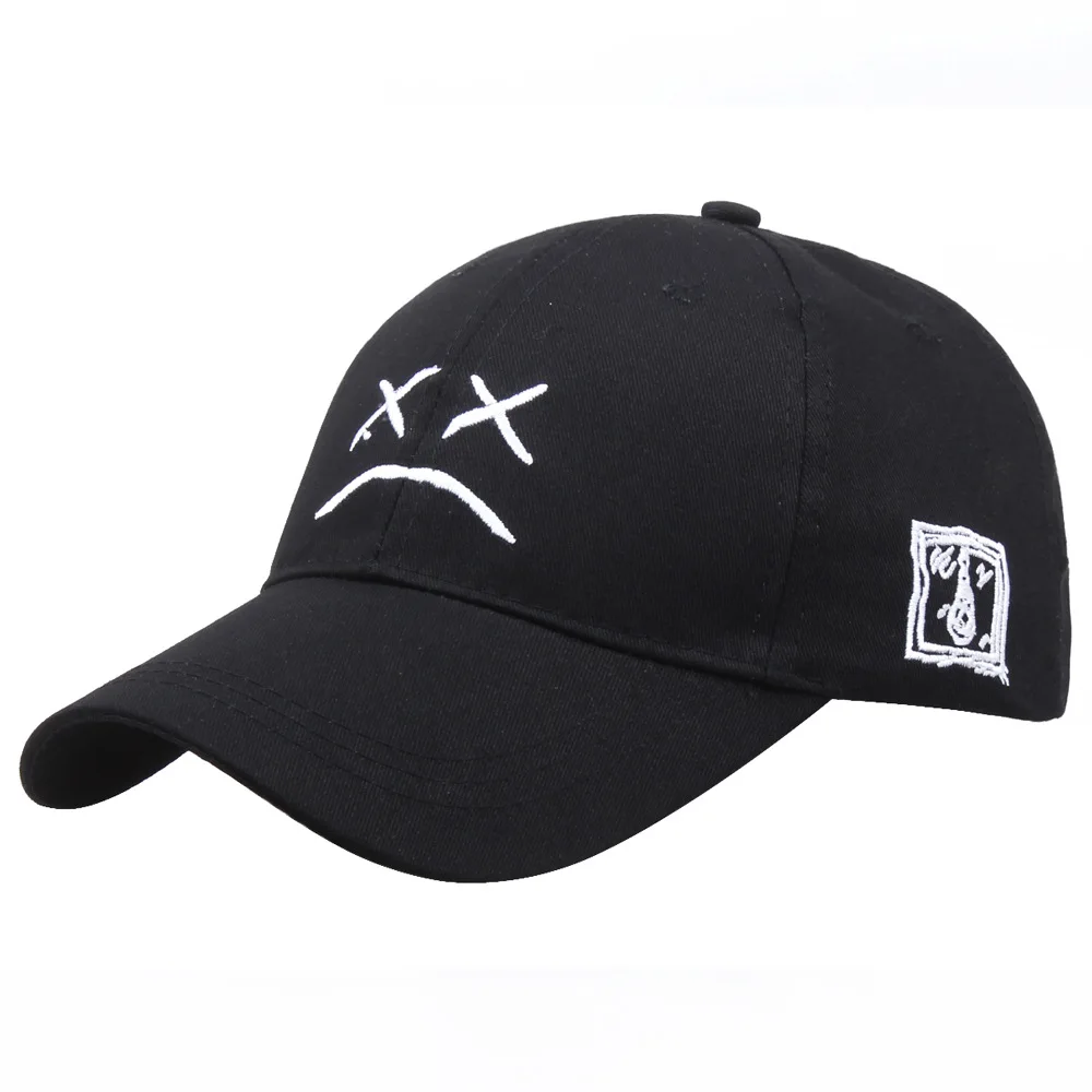 Бейсболка МужскаяЖенская, хлопковая, с вышивкой и рисунком грустног...