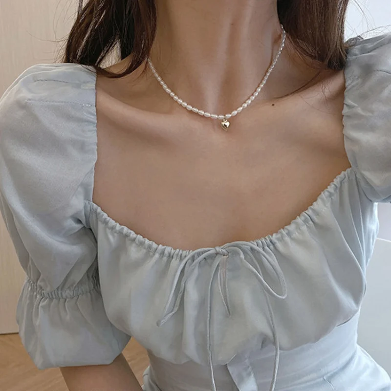 Женская цепочка на ключицу, с натуральным пресноводным жемчугом, в стиле ретро, с медведем, смайликом, сердцем, короткое ожерелье с подвеской