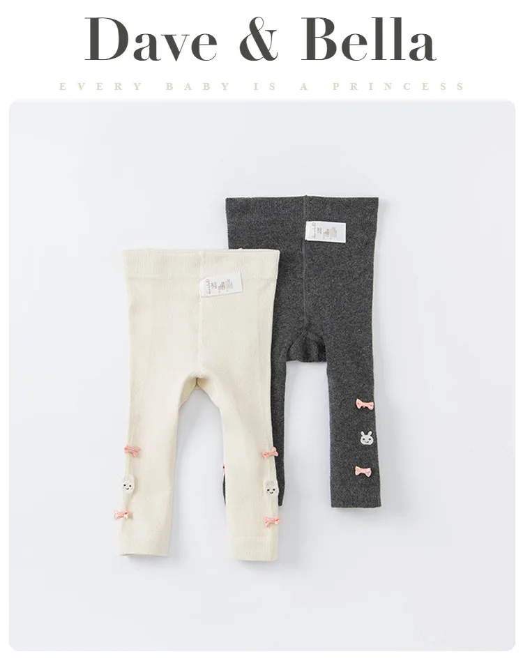 DBZ18513-2 нижнее белье в стиле бренда dave bellaкомплект, осенняя одежда для детей Одежда для маленьких девочек в стиле лолита с бантом, леггинсы с мультяшным рисунком детские модные леггинсы для малышей