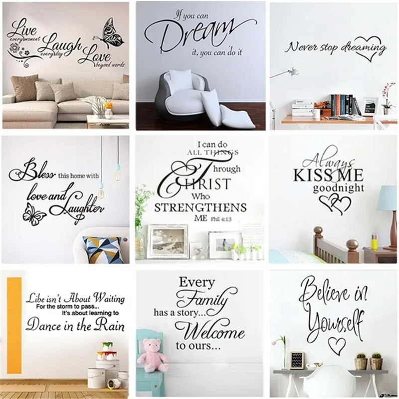 Английский Стикеры с пословицами на стену дома украшения съемные Настенные обои Гостиная Спальня росписи номера украшения