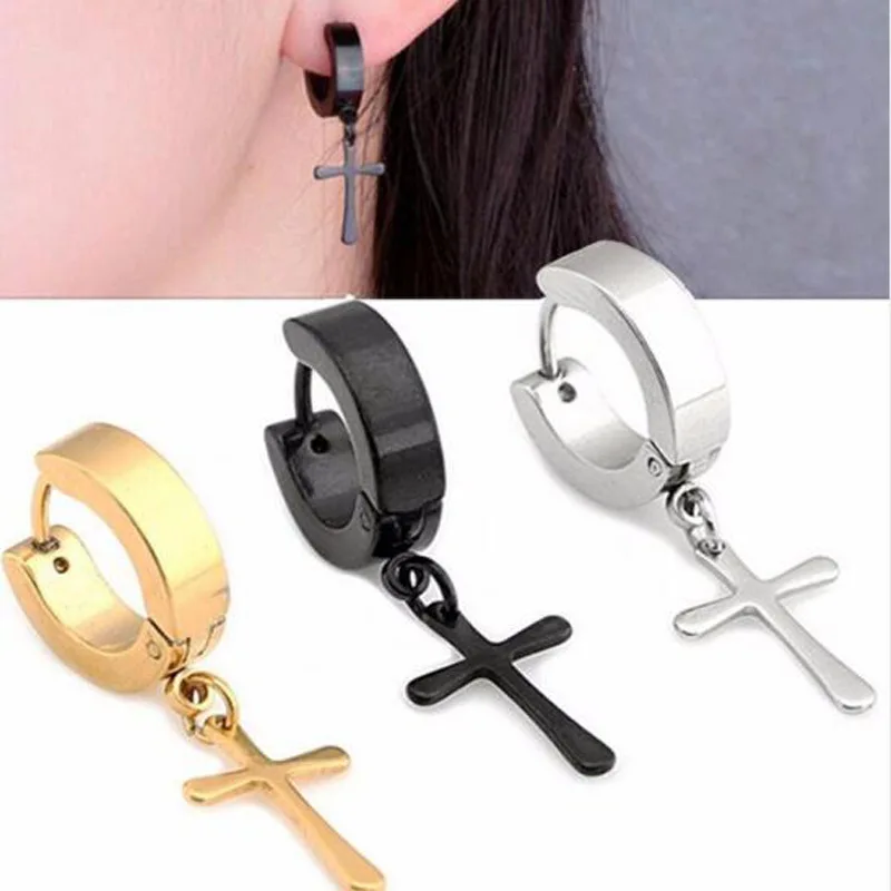 Новые популярные серьги из нержавеющей стали для мужчин/женщин панк черные серьги крест гот Ювелирные изделия Подарки