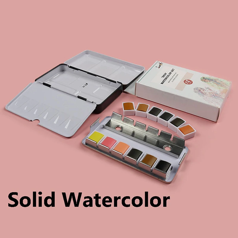 Жестяная коробка 12 цветов, однотонная Акварельная краска для рисов...