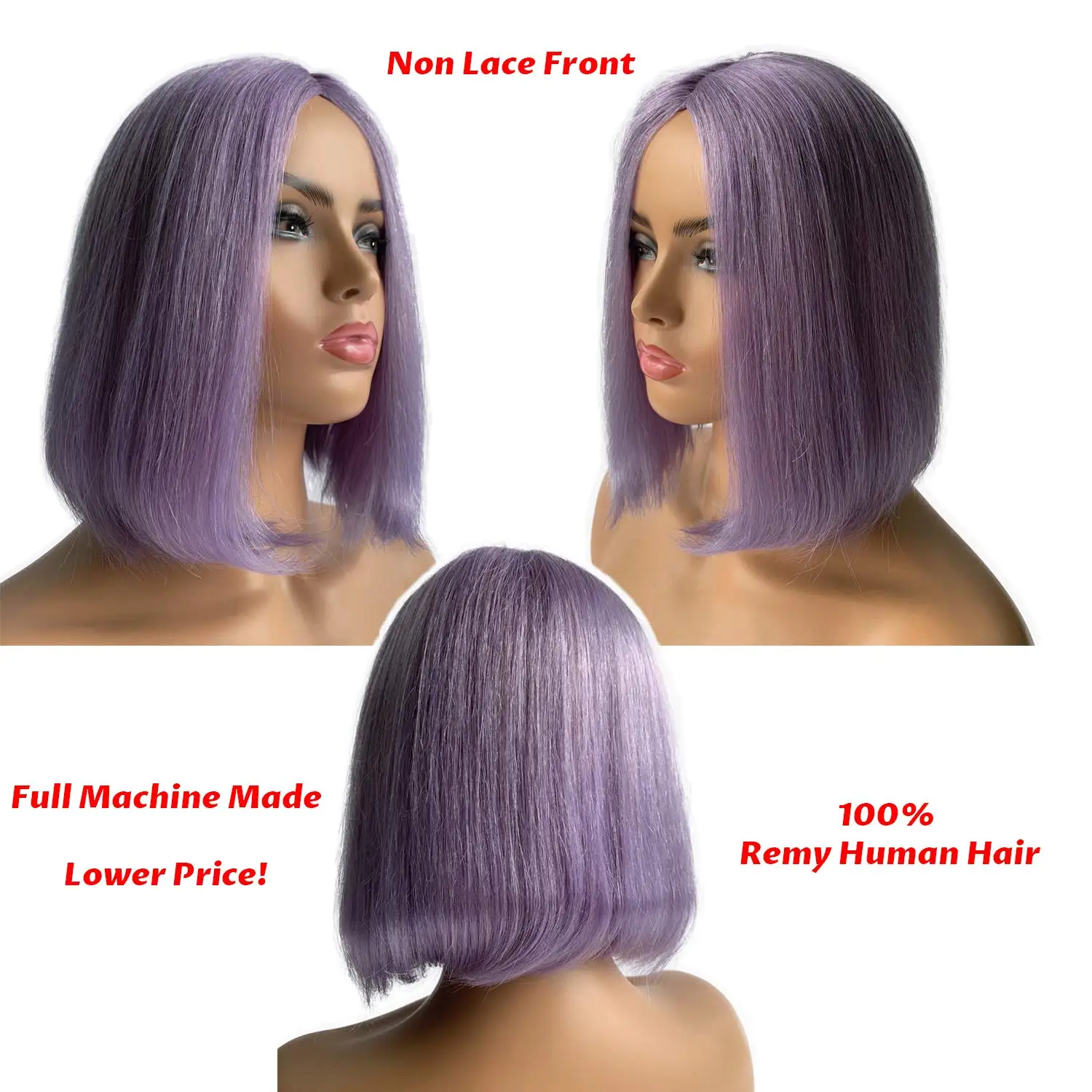 Парик фиолетового Боба, парики из человеческих волос без шнуровки спереди для черных женщин, плотность 180%, цветные фиолетовые прямые парики боб, бразильские парики без повреждений