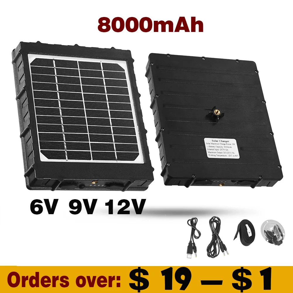 Наружная солнечная панель 8000mAh 6V 9V 12V солнечное зарядное устройство для охотничьих камер