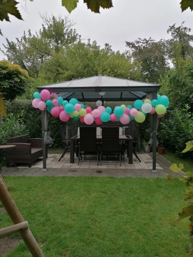 Цвета воздушных шаров не такие красивые, яркие и веселые, как на фото. Это было разочарование с этой стороны, но если много воздушных шаров приходят, большие и маленькие и ленты, чтобы связать их.
