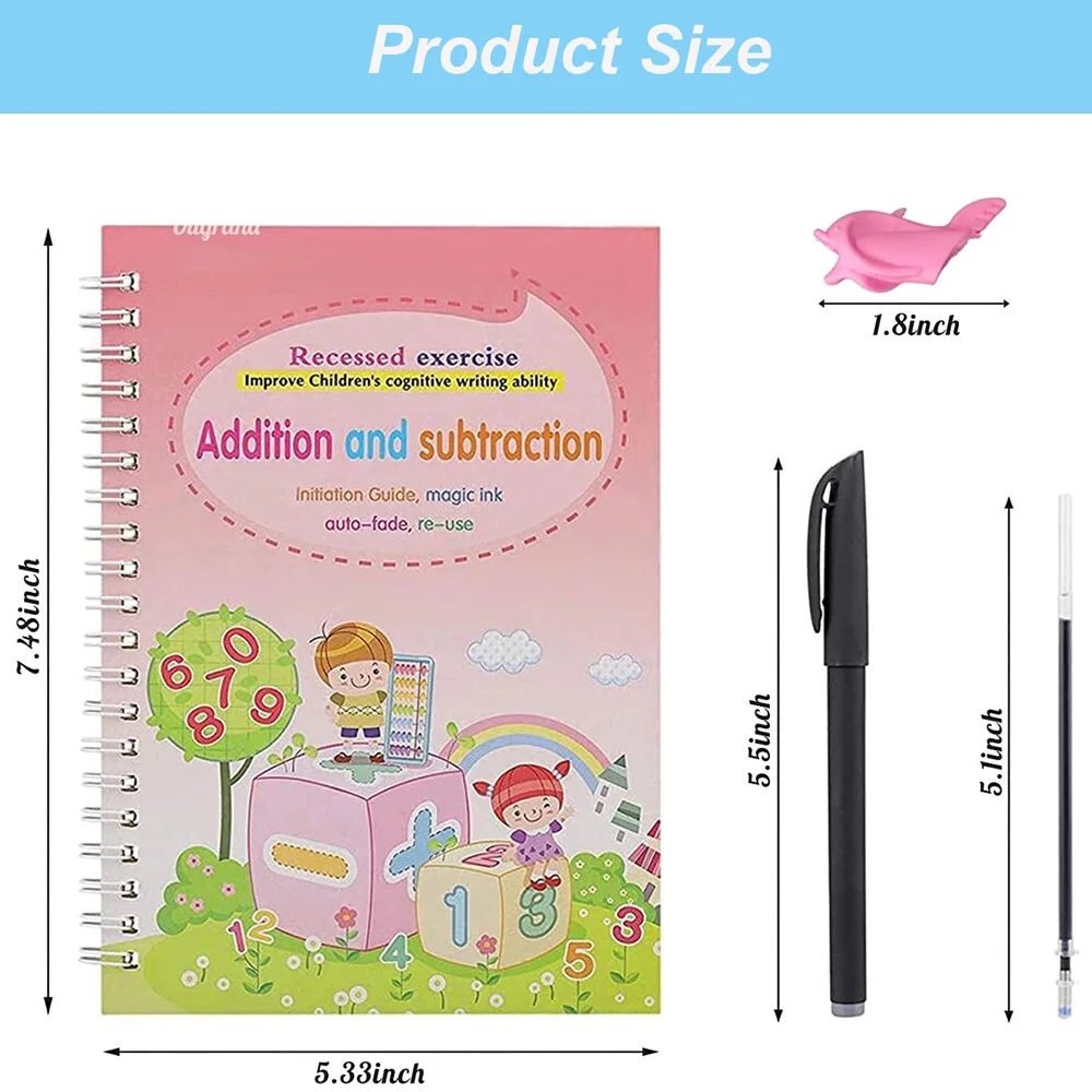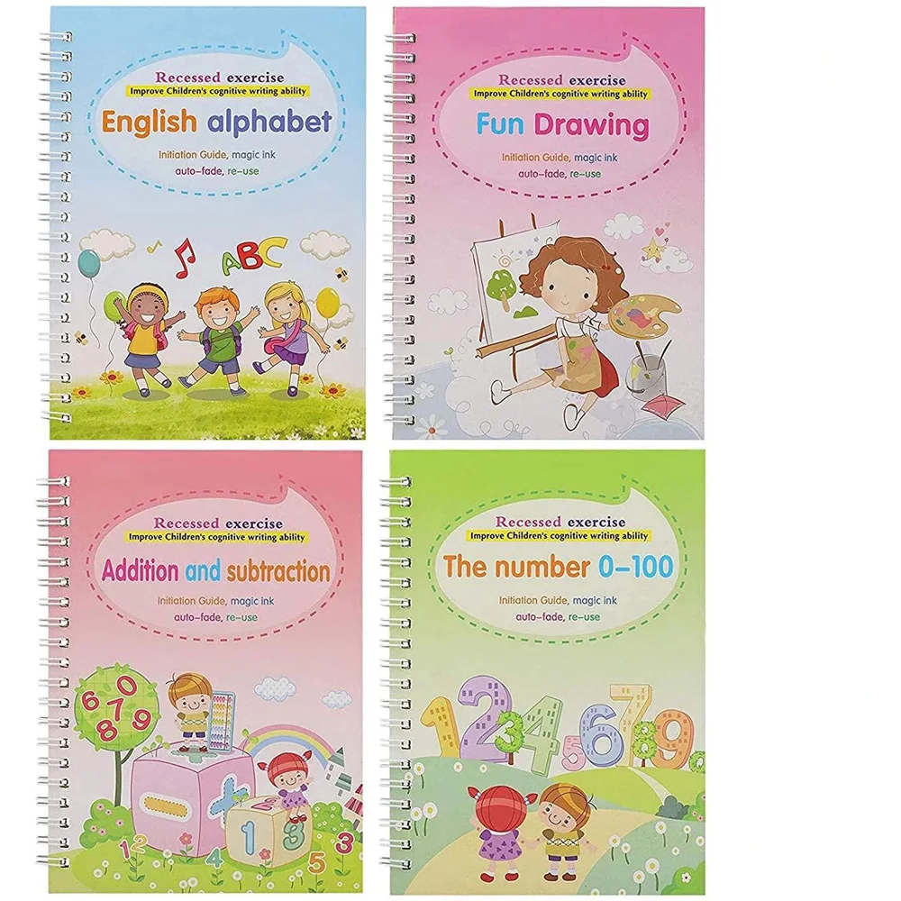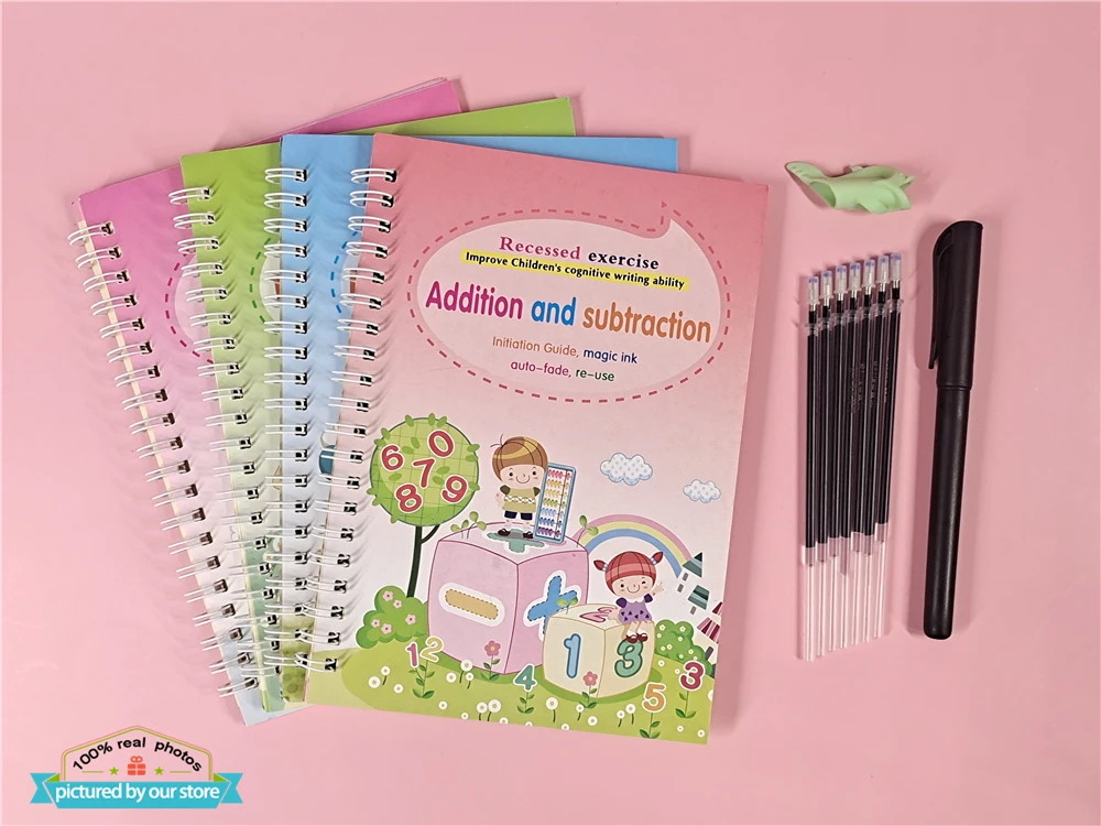 4 книги + ручка, волшебная практическая книга, Бесплатная вытирание, детская игрушка, стикер для письма, английская книга для каллиграфии, Монтессори, игрушки