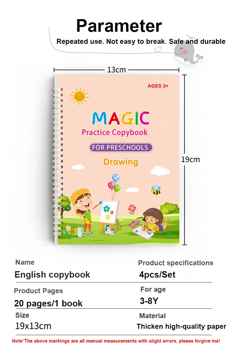 С трехмерным дизайном паза, эти книги для отслеживания почерка могут стандартизировать стандартный формат письма, весело, но практично для детей, чтобы использовать в повседневной жизни, повышают интерес: эти волшебные книги каллиграфии сделаны с забавной графической комбинацией, яркими цветами и милыми формами, которые могут улучшить память и интерес детей, Принесите им много веселья, дети могут многому научиться