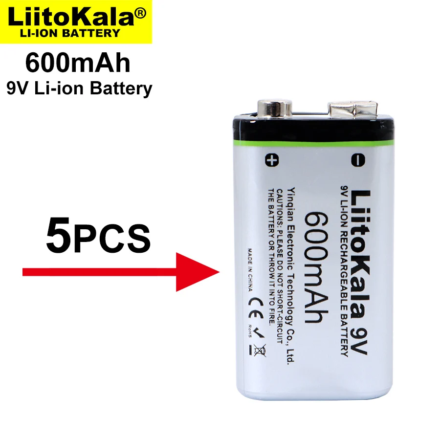 5 шт.лот LiitoKala 600 мАч 9 В литий-ионная батарея 6F2 2 перезаряжаемая батарея для микрофона мультиметра RC игрушки термопистолет