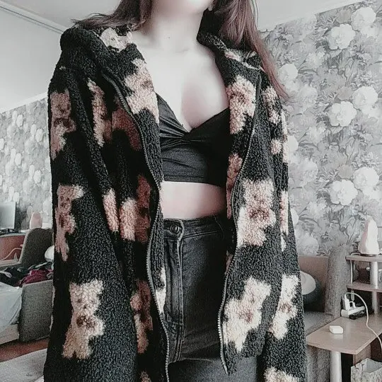 Женские зимние пальто из овечьей шерсти с мультяшным медведем 2021 куртка с капюшоном повседневные топы большого размера одежда женские куртки милые корейские пальто Y2k