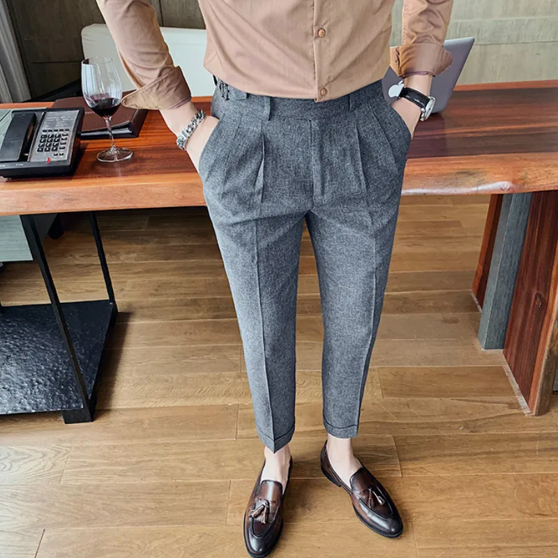 Брюки мужские классические однотонные, модные деловые Костюмные штаны, приталенные, для офиса, свадьбы, уличная одежда