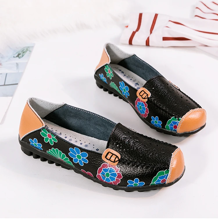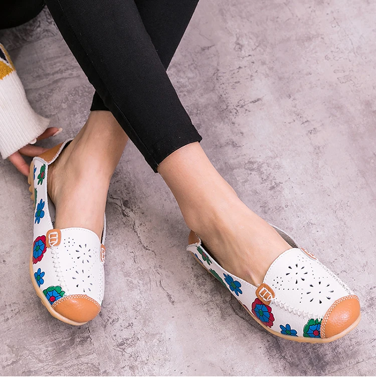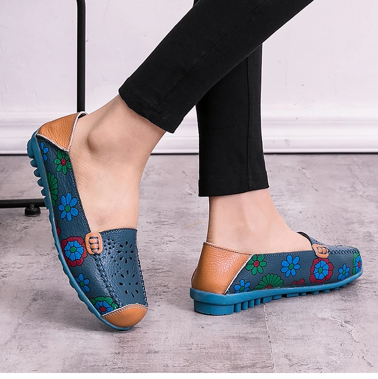Женские лоферы на плоской платформе; Женские модные мокасины; Женская обувь для отдыха на плоской подошве с вырезами; Женская обувь с цветочным принтом; Большие размеры