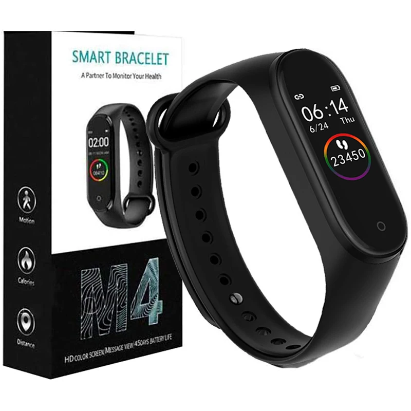 Характеристика:6 режимов упражнений: беговая дорожка, Спорт, бег на открытом воздухе, Велоспорт, прогулки, плавание в бассейне; Подсчет шагов, расстояние и сожженные калории-Мониторинг здоровья:Уведомление об окончании упражнений, настройка цели, мониторинг сна, мониторинг сердечного ритма, проверка частоты сердечных сокращений в течение всего дня, мониторинг сердечного ритма, мониторинг сердечного ритма, будильник на холостом ходуДругие функции:Сигналы тревоги, датчики приближения, предустановленные циферблаты, Настраиваемые циферблаты, экраны блокировки, таймеры, секундомеры, телефонные оповещения и уведомления, входящие звонки, уведомления о сообщениях, уведомления о календаре, уведомления приложений, прогноза погоды, найдите мой телефон, разблокировку телефона, уведомление о событиях, ночной режим, режим «Не беспокоить» (Вы можете использовать его даже без телефона), управление музыкой, Bluetooth, Отображение уровня заряда батареи, различные способы ношения, обновление OTAСпецификация:Тип: M4 (глобальная версия)Размер экрана: 0,95 дюймаМатериал браслета: термопластичный полиуретанРегулируемая длина ремешка: 155-216 ммШирина браслета: 16 ммУровень водонепроницаемости: 5 атмТип дисплея: AMOLEDРазрешение: 120x240 RGBГлубина Цвета: 24 битЯркость экрана: до 400 нит (максимальная яркость), регулируемая яркостьТип сенсорного экрана: емкостный сенсорный экранКнопка: одна сенсорная кнопка (Пробуждение, возврат)Тип ремешка: съемный ремешокПосылка включает в себя:1 * умный Браслет1 * зарядный кабель1 * Руководство пользователя