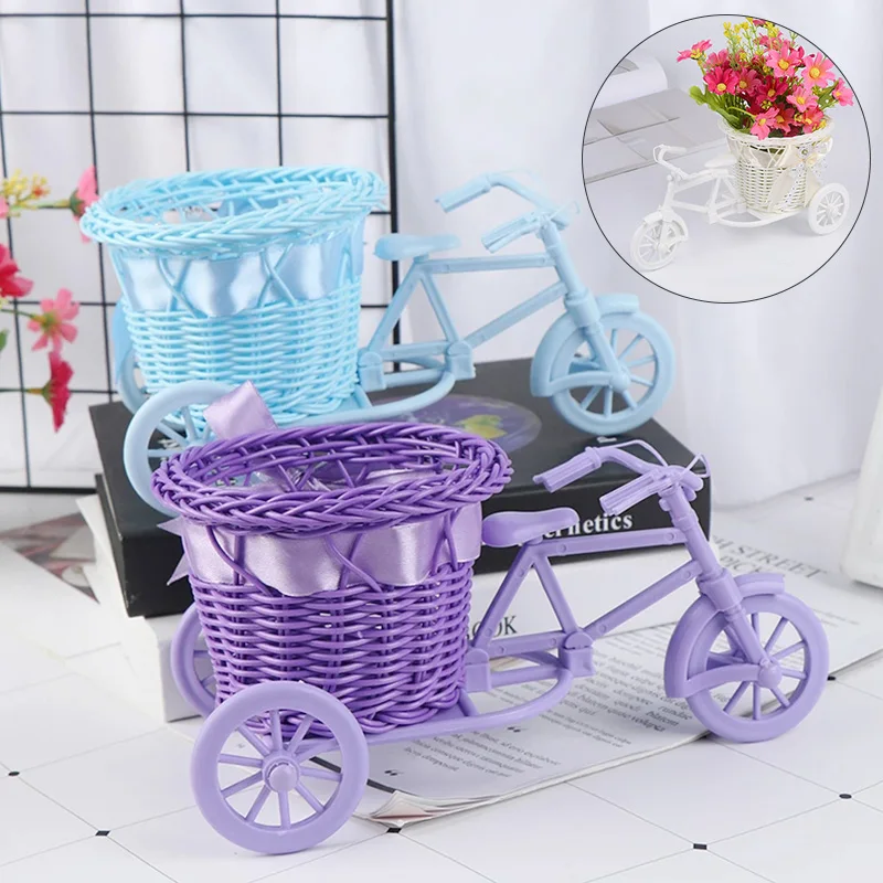 1 шт. ручной трехколесный велосипед плетеная корзина для цветов, пластиковый велосипед, открытый сад, патио, украшение для хранения предметов