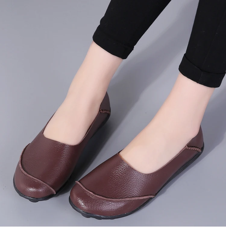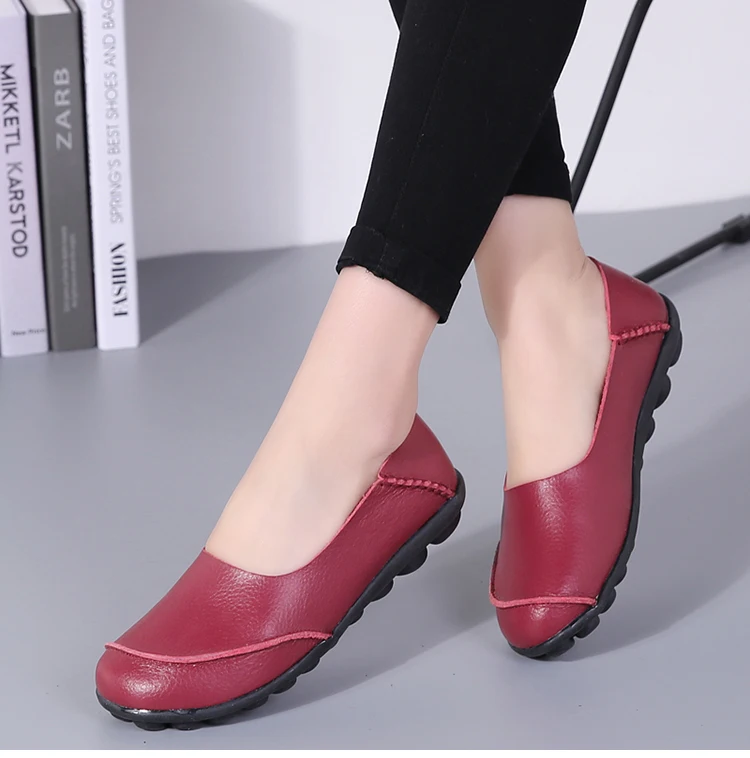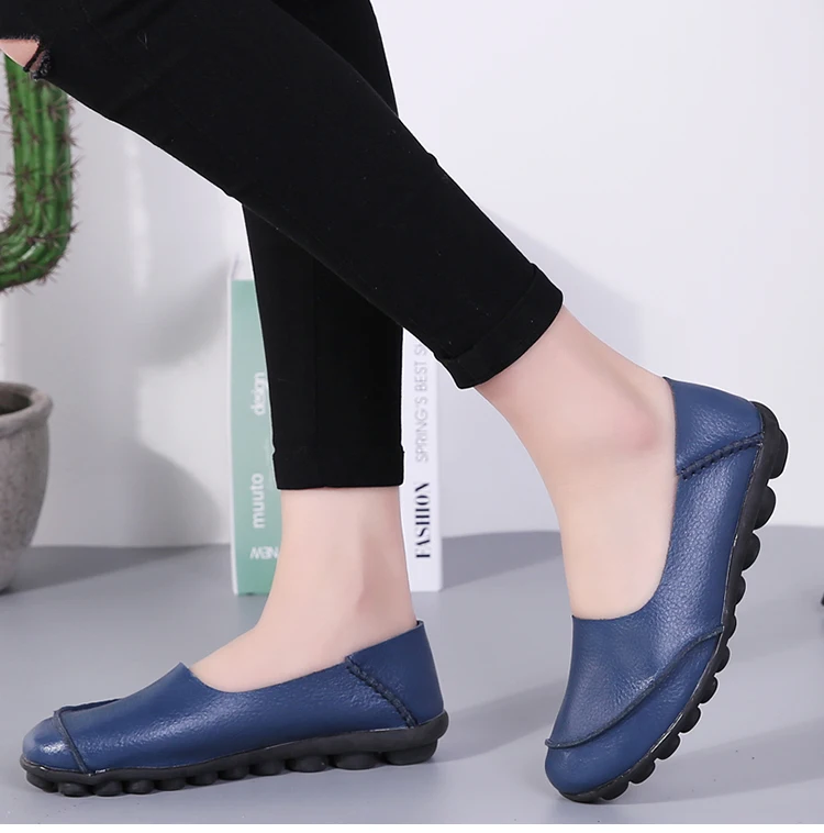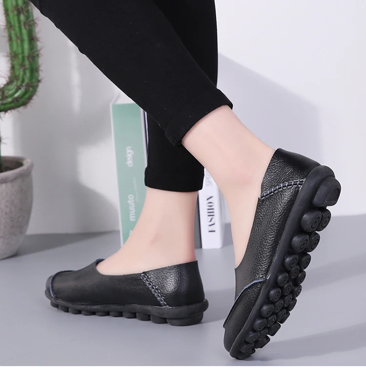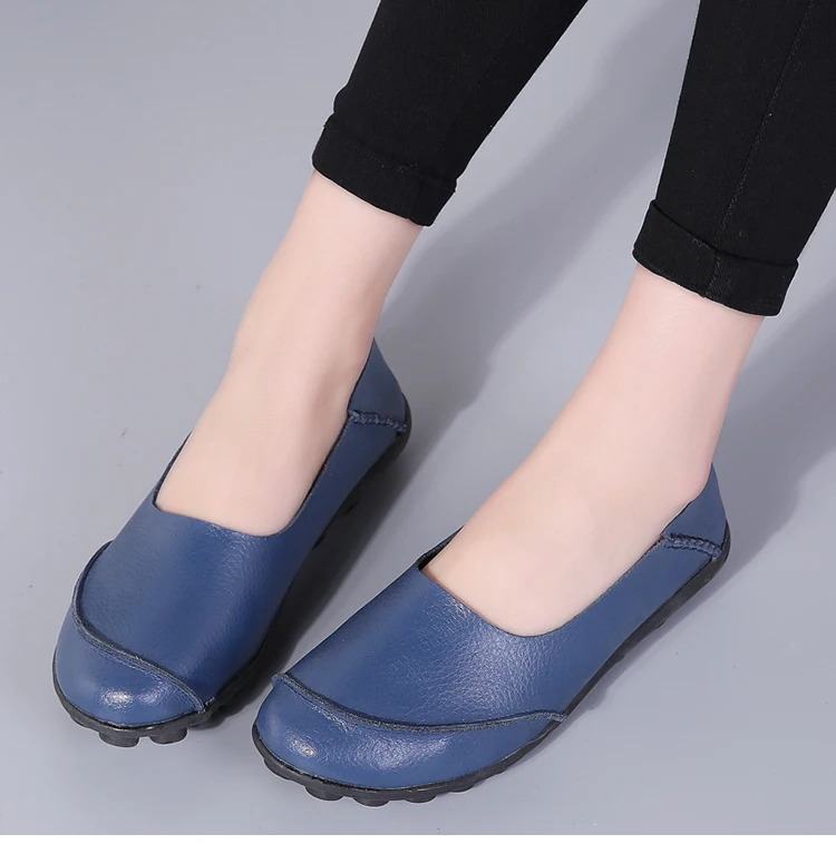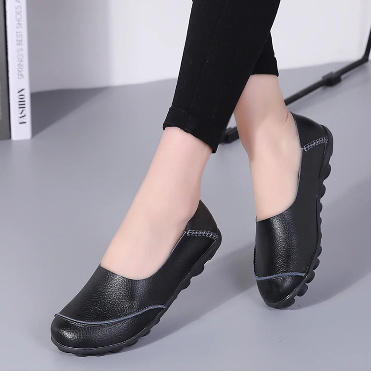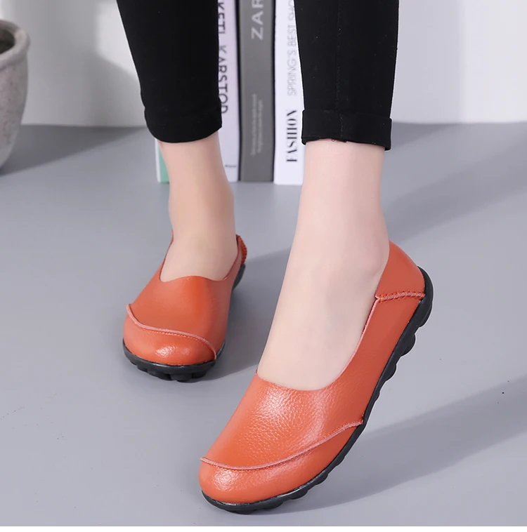 2021 женская обувь; Однотонная женская обувь на платформе; Женские низкие Туфли с круглым носком; Женские лоферы из натуральной кожи; Большие размеры