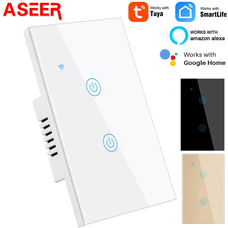 ASEER, Bluetooth, Wifi, умный сенсорный выключатель, светильник, переключатель 2 Gang, US Standar,tuya App RF, беспроводной пульт дистанционного управления Alexa Google, Голосовое управление