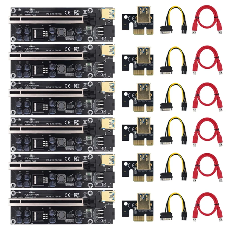 Переходная карта VER009S Plus PCI-E, Райзер VER 009S PCI Express 1X 4X 6X 8X 16X, USB 3,0, кабель SATA к 6-контактному разъему для видеокарты