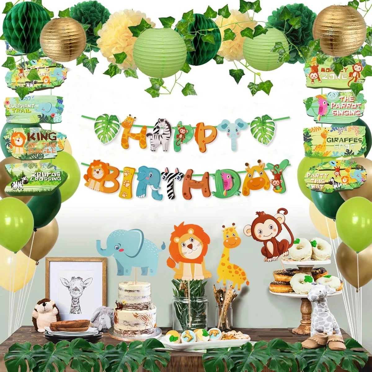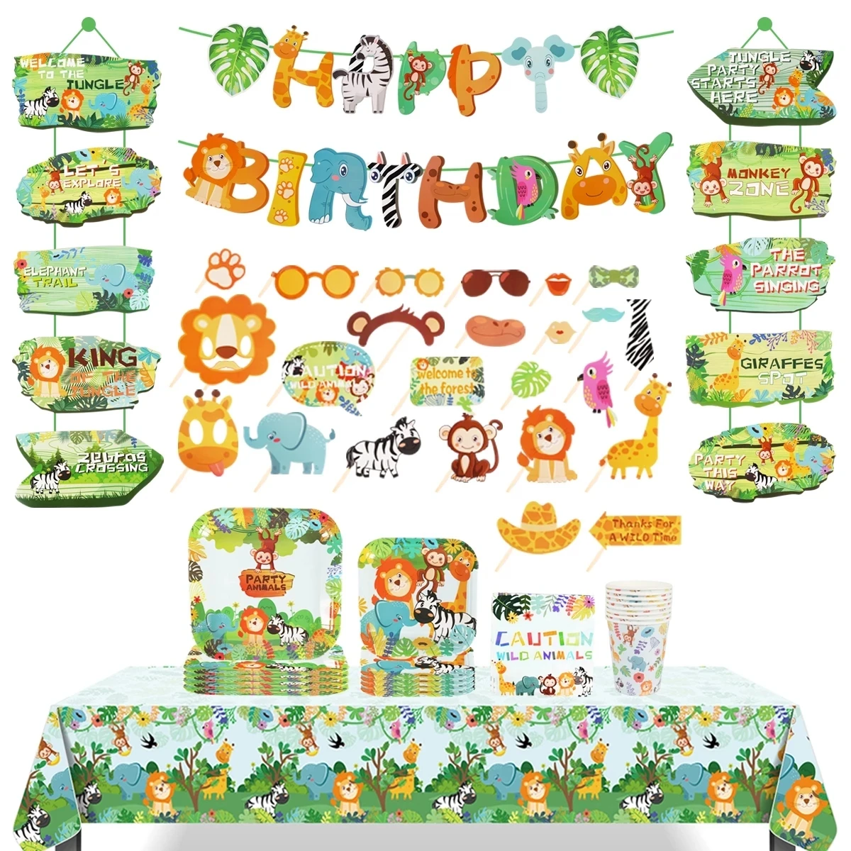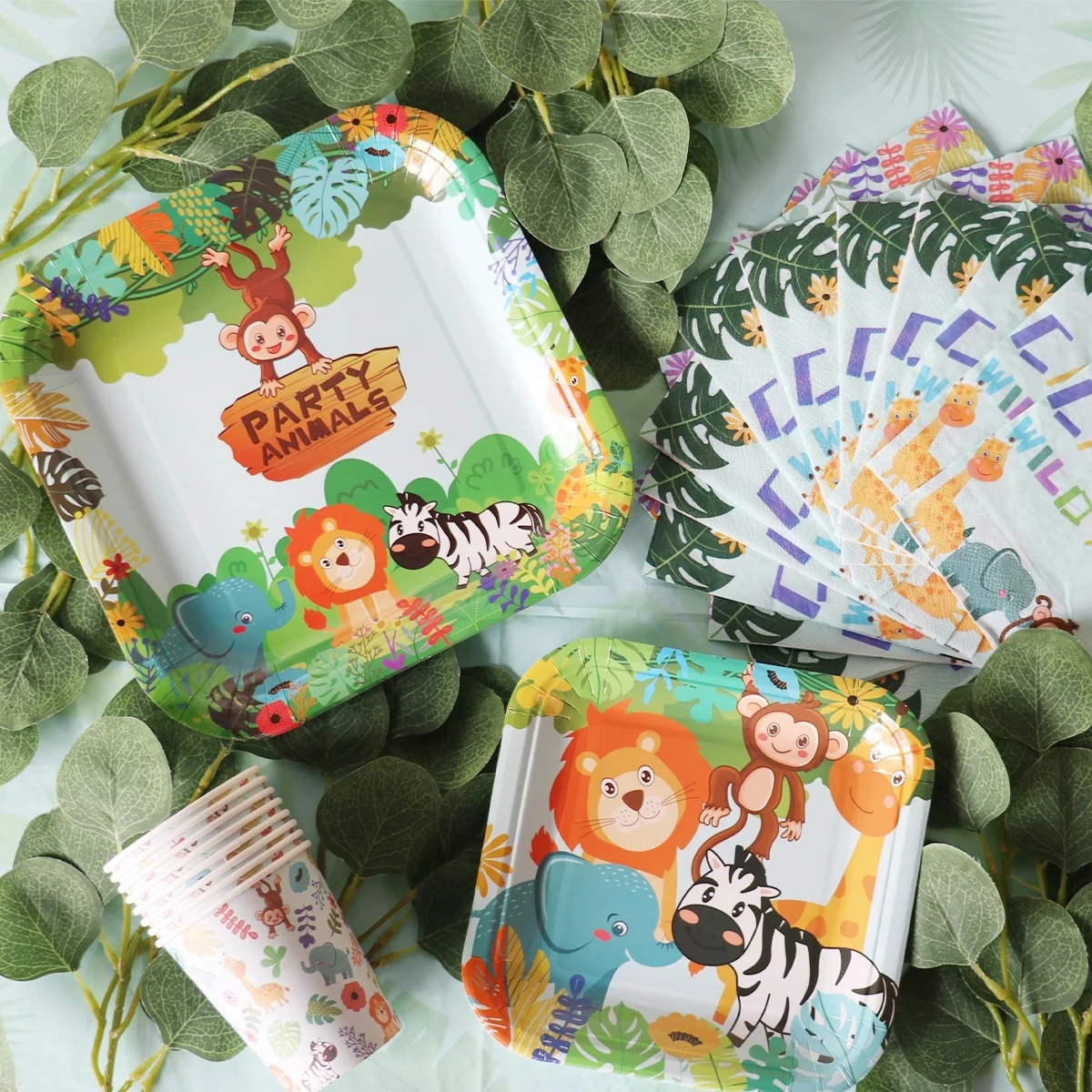 Столовая посуда одноразовая с изображением леса, джунглей, сафари, Детский зоопарк, обезьяна, Лев, Зебра, слон, первый мальчик, лес