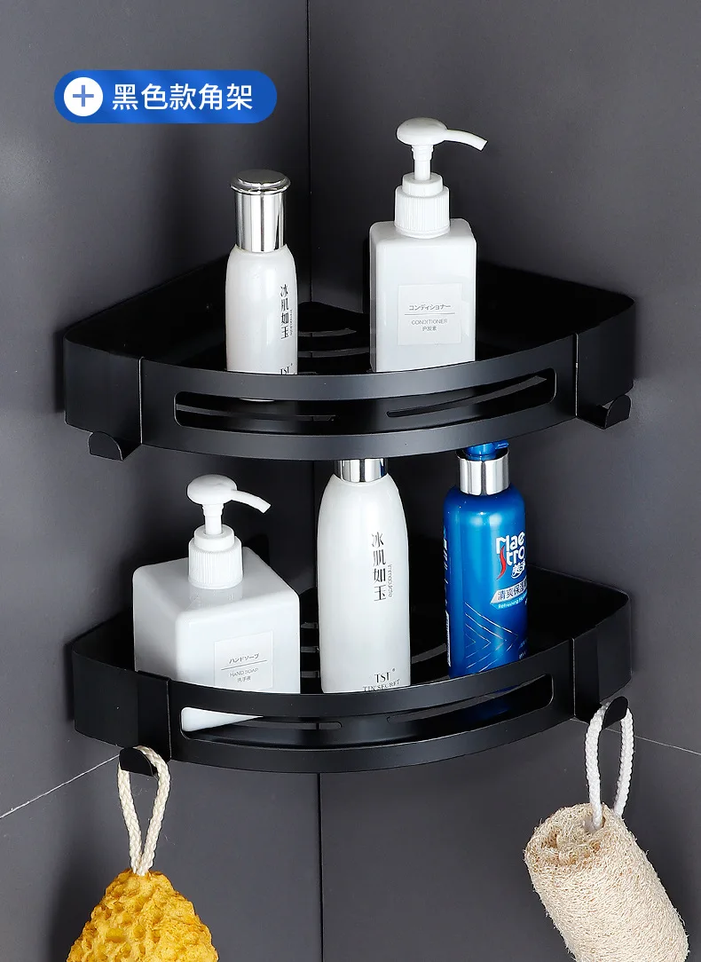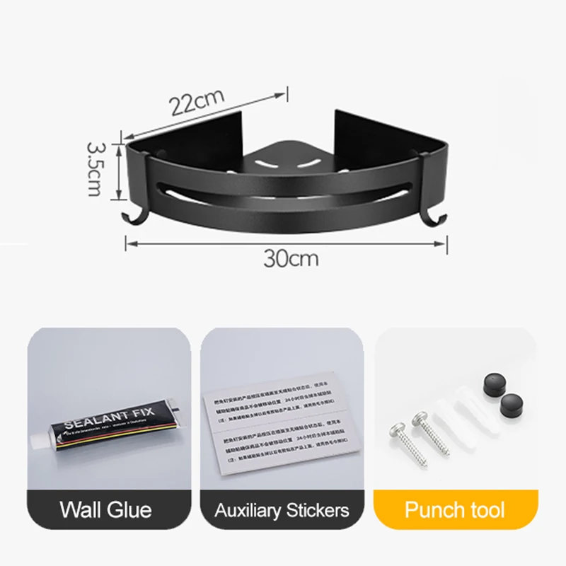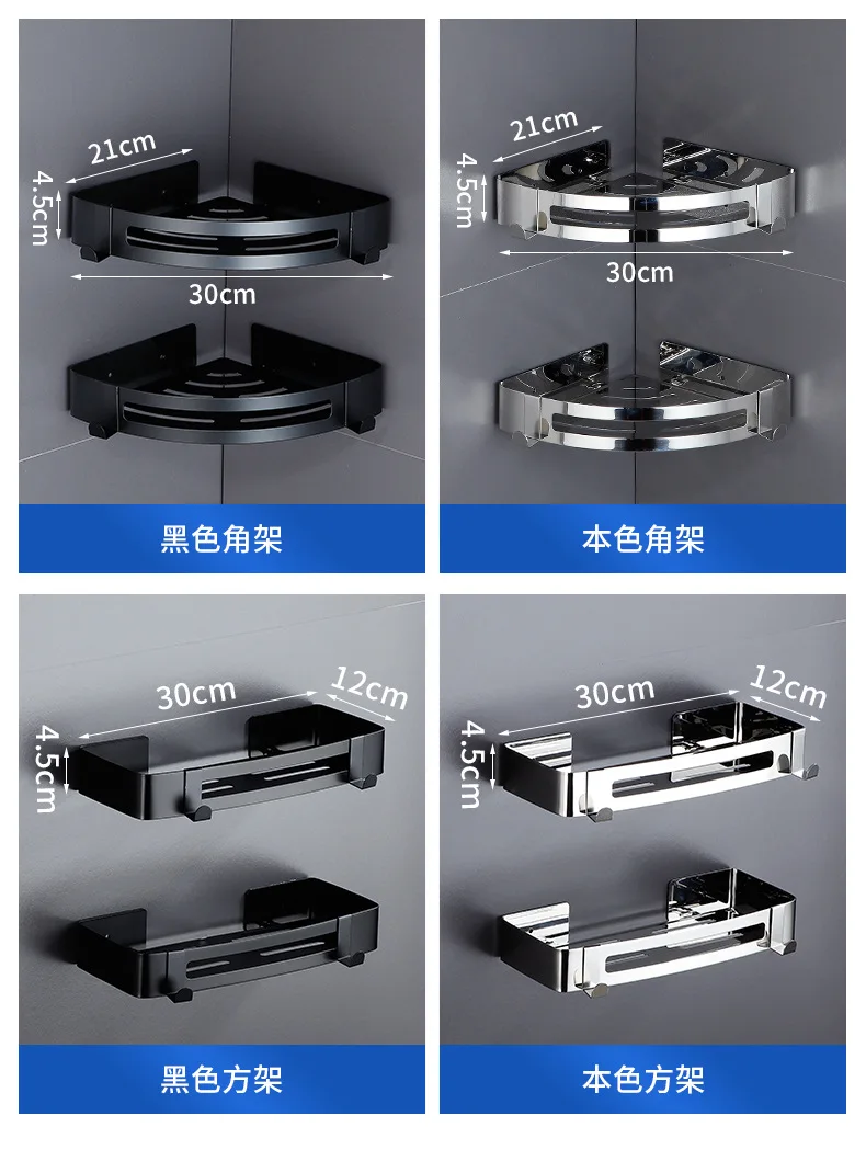 Треугольная полка для хранения полотенец и душа, черные угловые полки, Настенный алюминиевый держатель для шампуня, без сверления, полка-органайзер для ванной