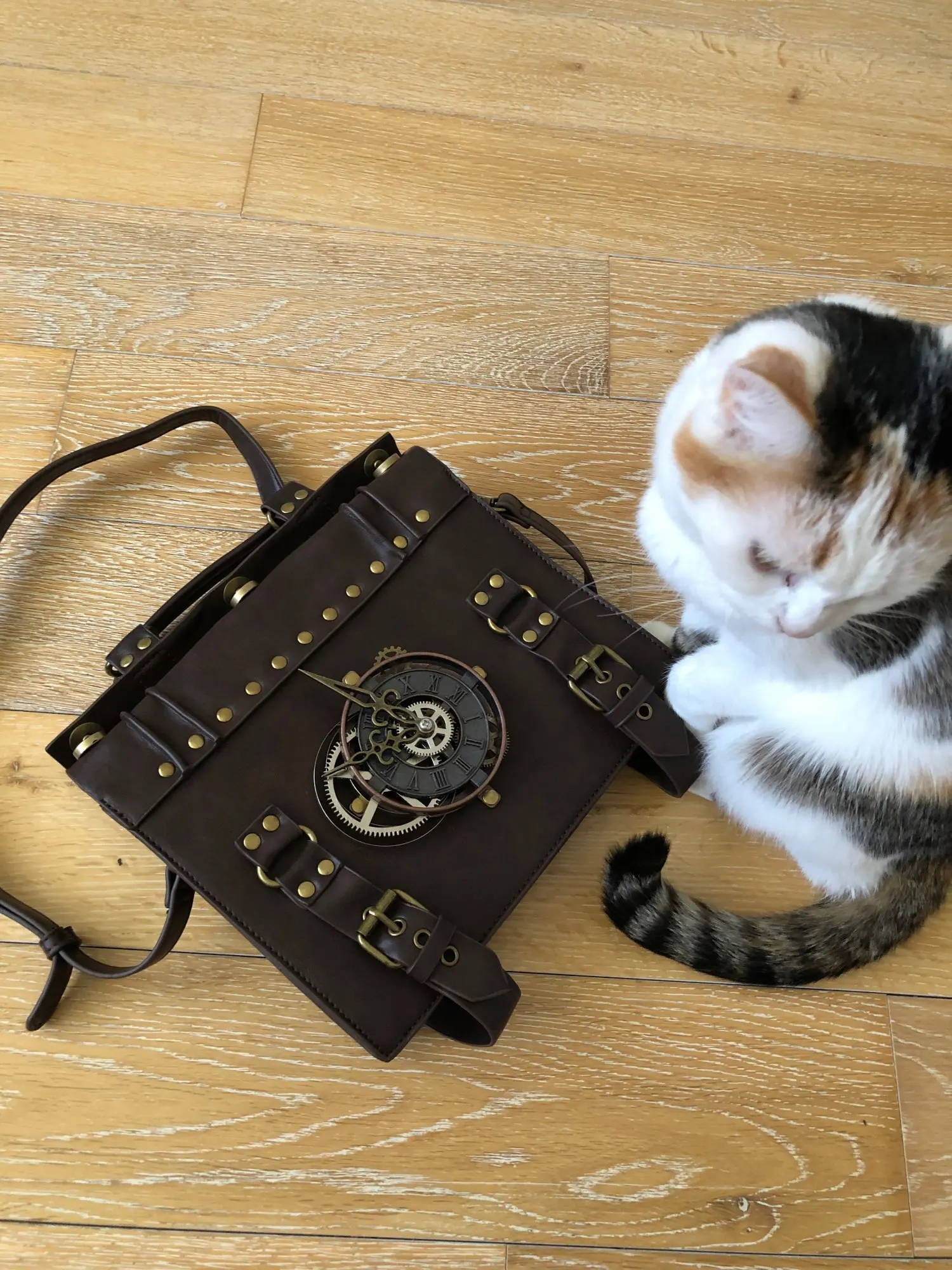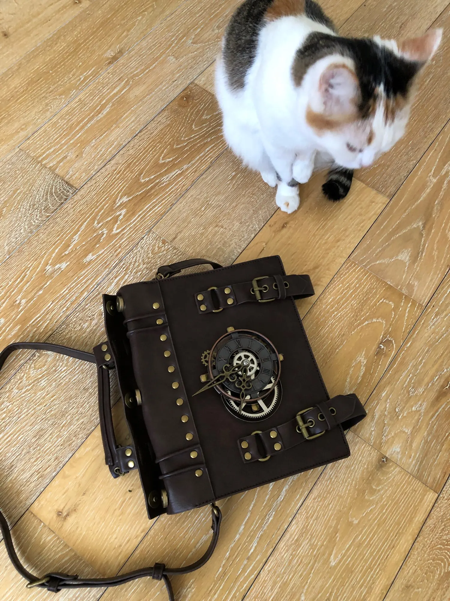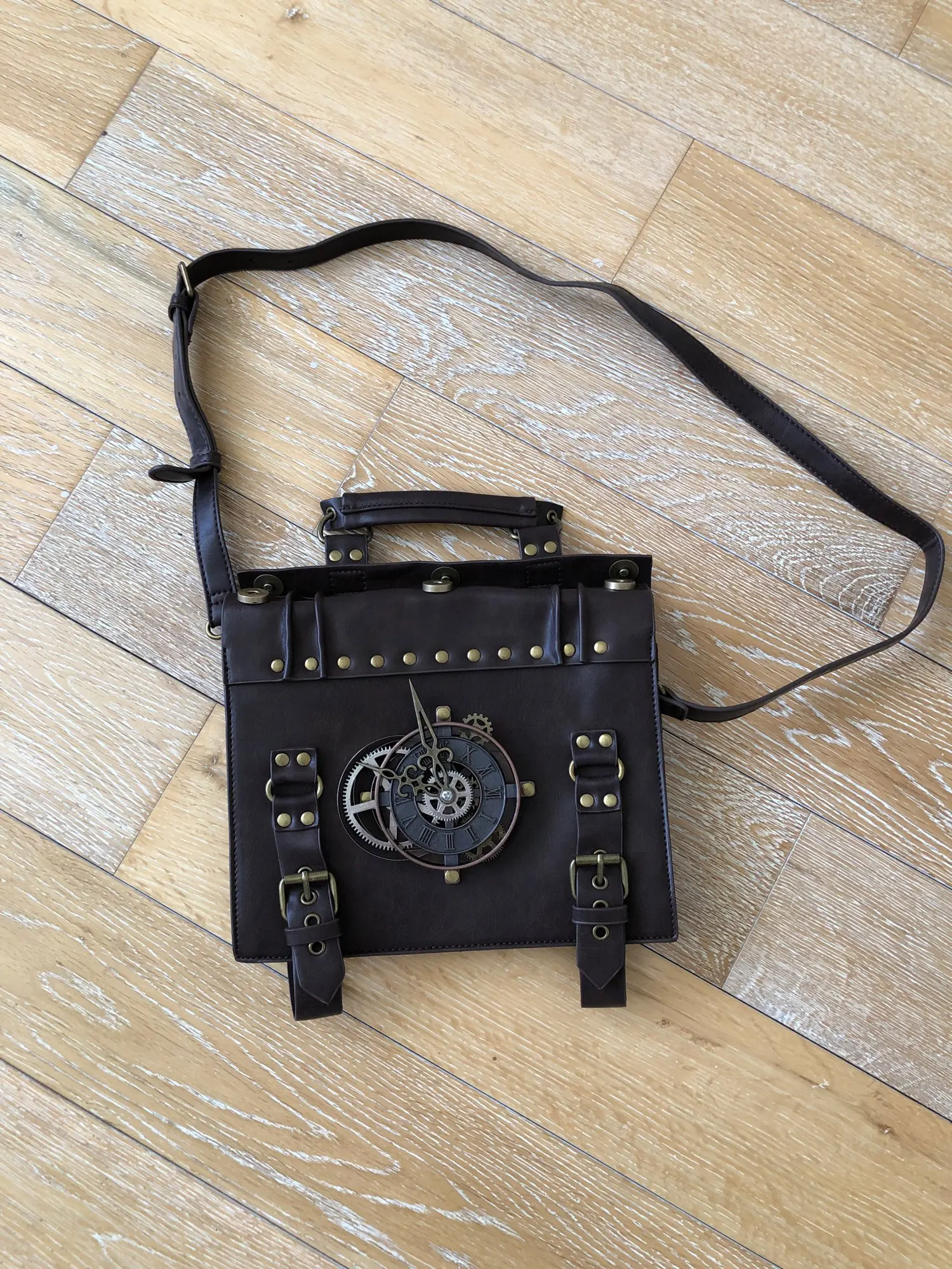 Сумка-слинг Женская, кожаная, в стиле стимпанк